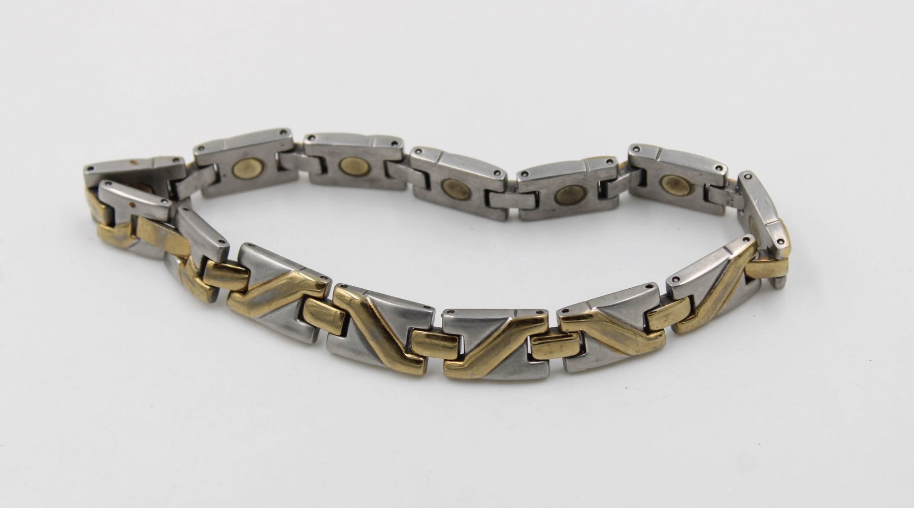 QUALITY SILVER & GOLD TONE MENS MAGNETIC BRACELET