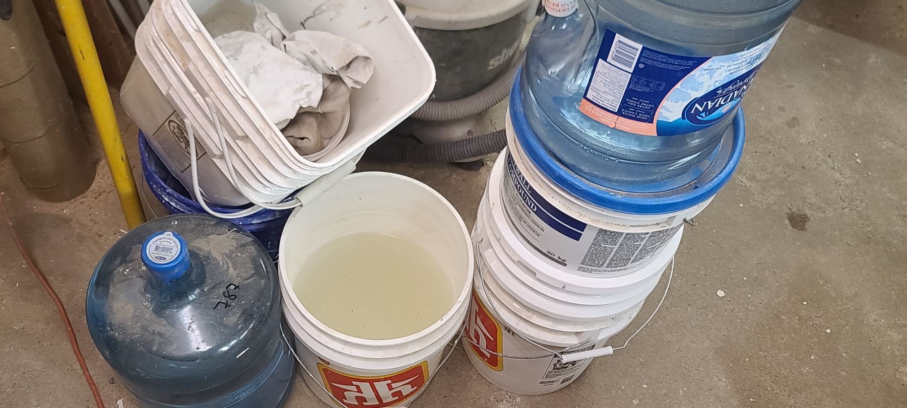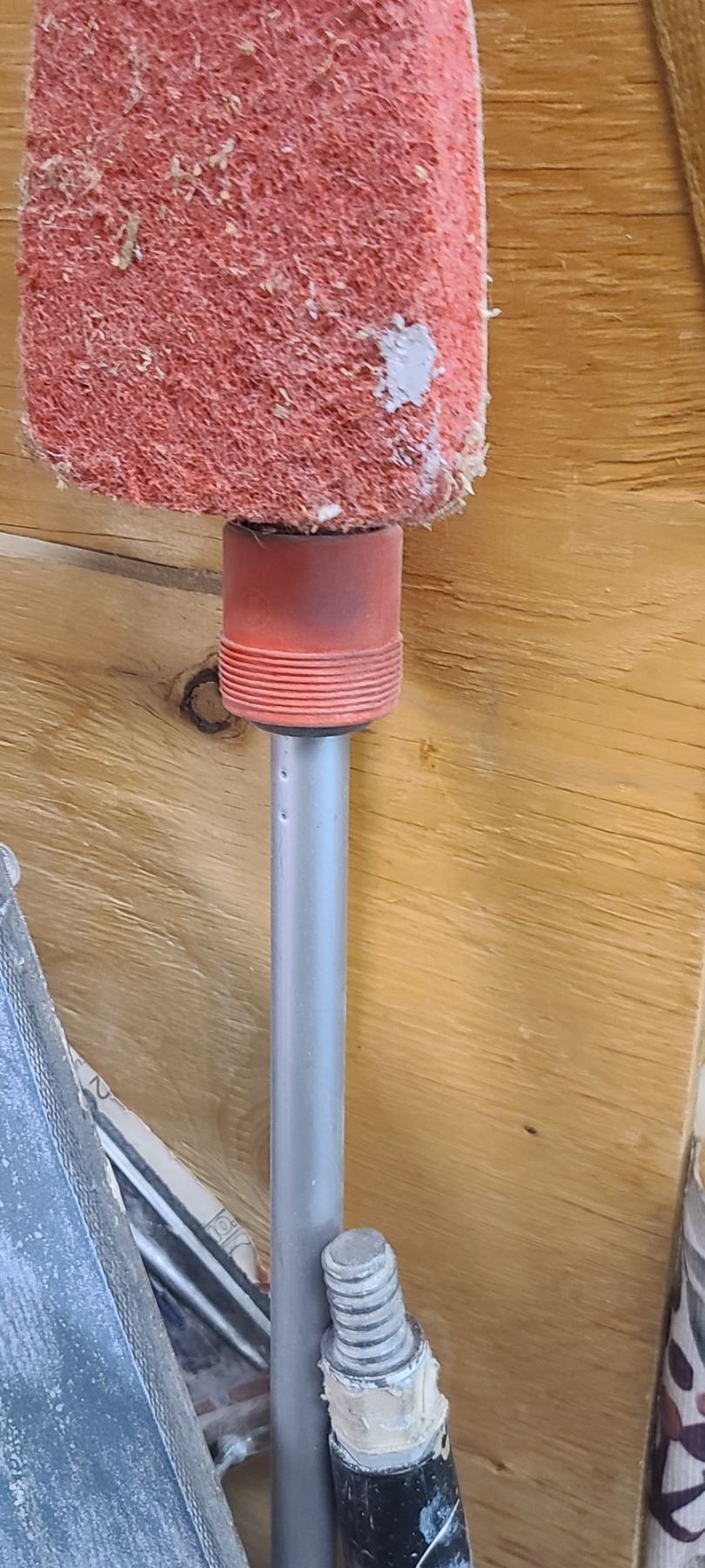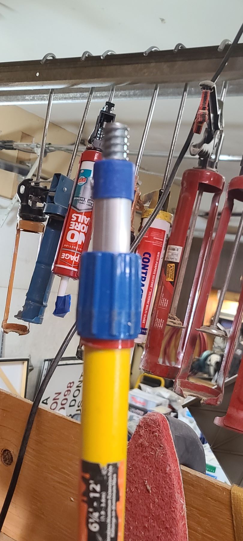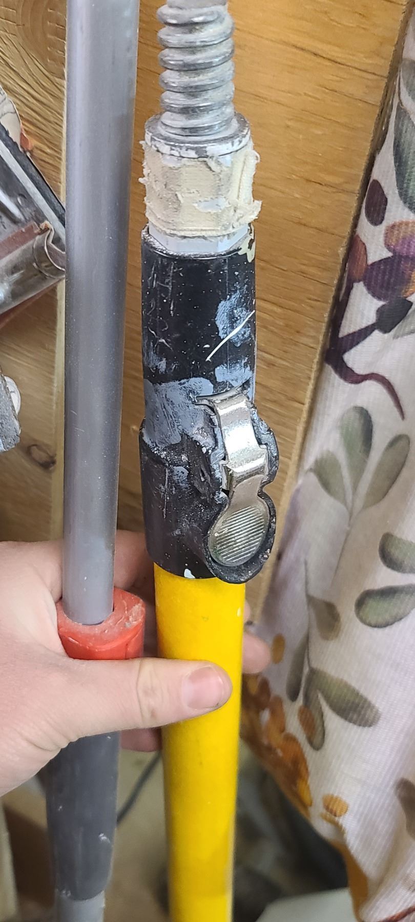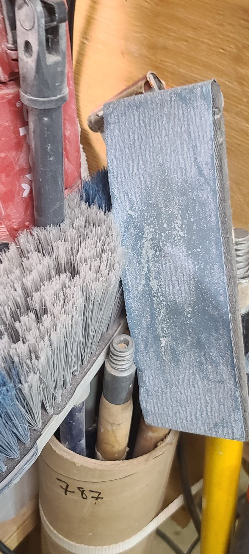 QUANTITY OF EMPTY PAIL EXTENSION HANDLES, BROOMS