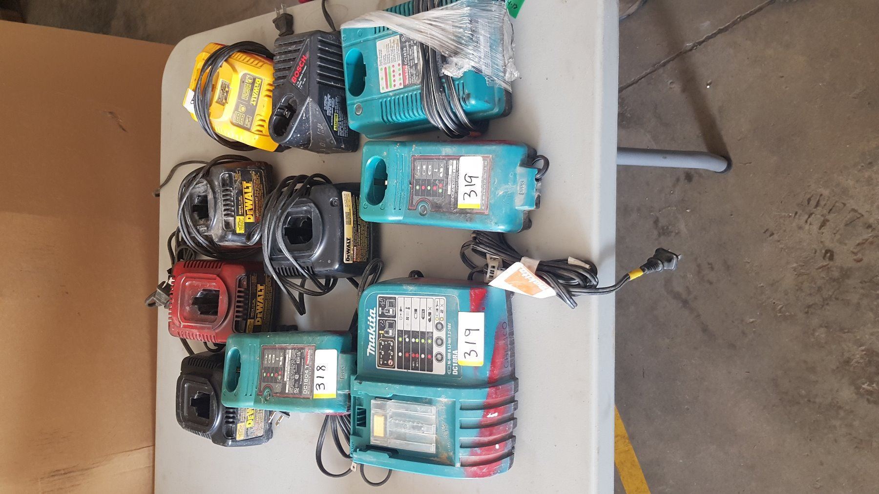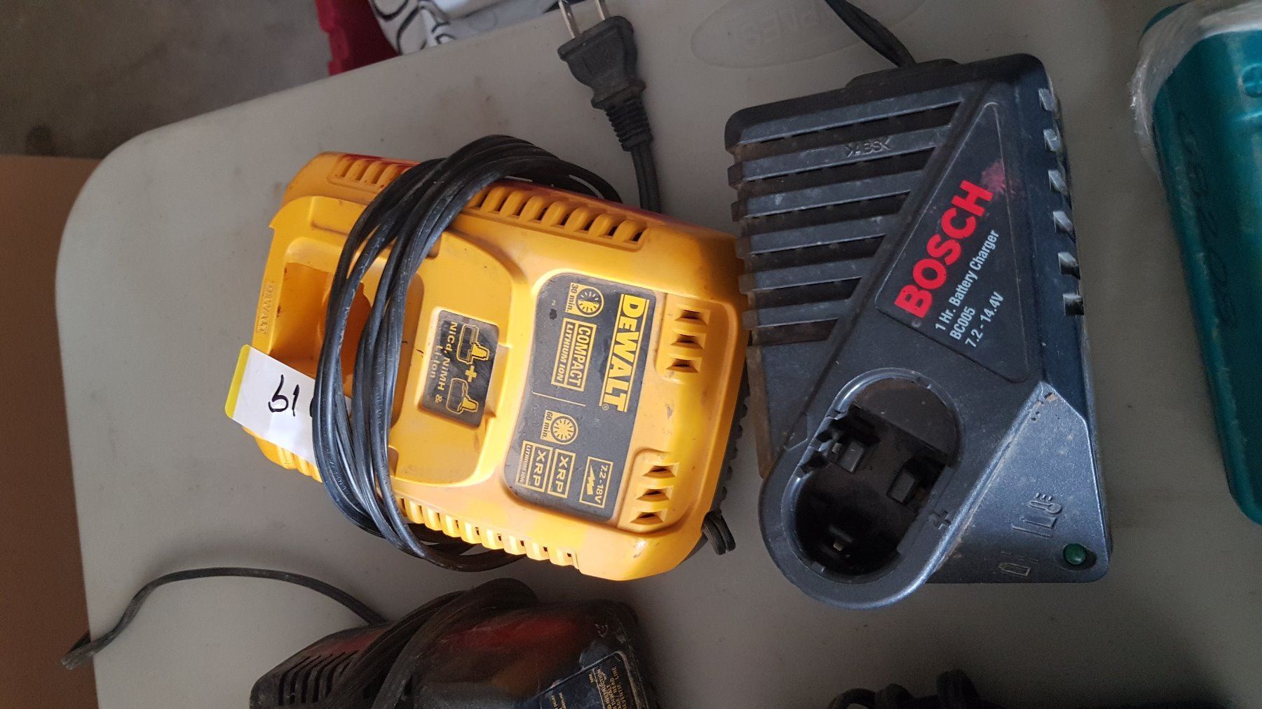 QUANTITY OF MAKITA, BOSCH, AND DEWALT 7.5 TO 18V CHARGERS