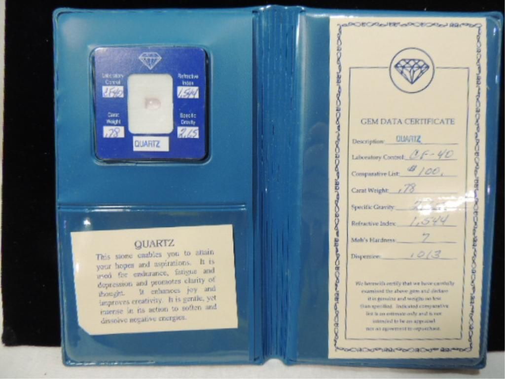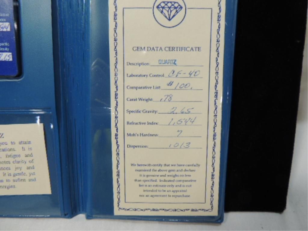 GEM DATA CERTIFICATE INCLUDED. QUARTZ ENABLES YOU TO ATTAIN YOUR HOPES AND ASPIRATIONS. ITS USED FOR ENDURANCE. AS SHOWN SEE PHOTO FOR MORE DETAILS.