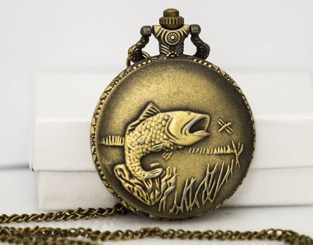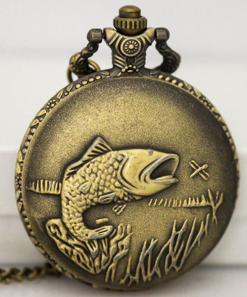 QUARZ POCKET WATCH W/ A FISH ON IT **|**|** QUARZ POCKET WATCH W/ A FISH ON IT