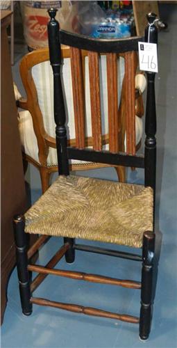 QUEEN ANNE BANNISTER BACK SIDE CHAIR old red stain under later black paint 18th century