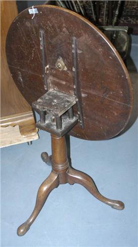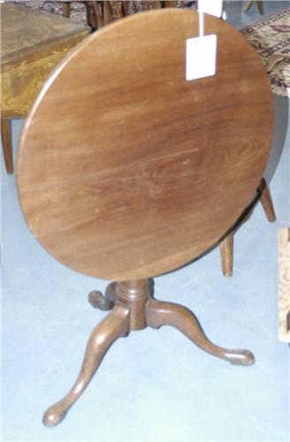 QUEEN ANNE MAHOGANY TILT TOP TABLE with bird cage mechanism, stamped "H.M", 28" diameter, condition: excellent, SHIPPING: See recommended third party shippers. This item can't be packed or shipped by seller.