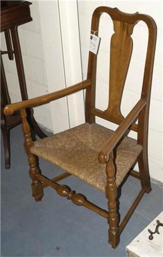 QUEEN ANNE MAPLE ARMCHAIR with rush seat early 18th century, CONDITION: refinished, legs pieced up,