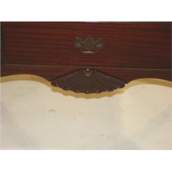 Queen Anne style mahogany cedar lined blanket chest on cabriole legs. Fan decoration on bottom. Surface scratching on top of lid. 29.5" H, 44.5" W, 21" D