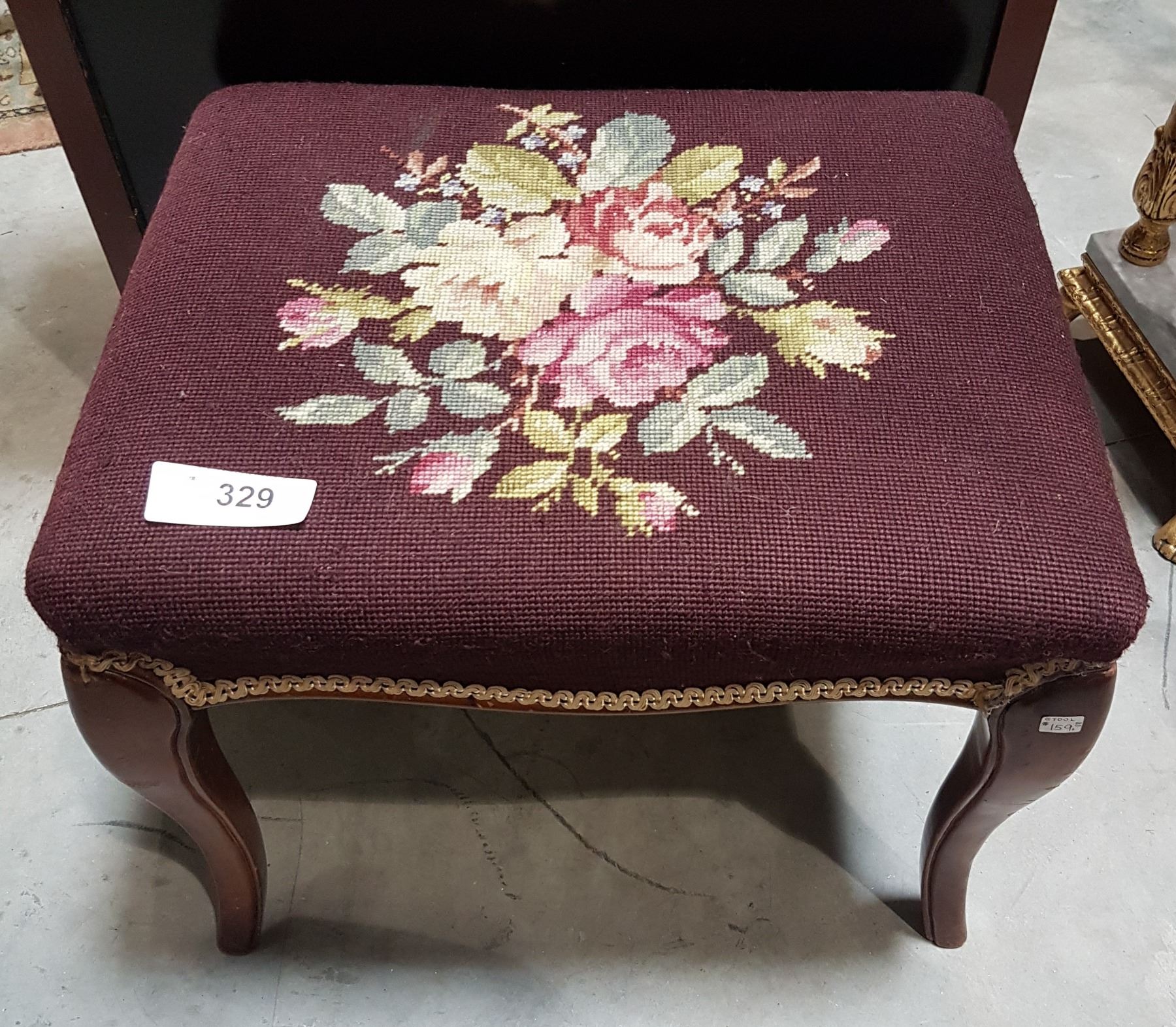 QUEEN ANNE STYLE NEEDLEPOINT STOOL