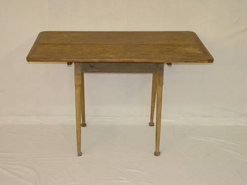 QUEEN ANNE TAP TABLE W/ SPLAY LEGS ON BUTTON FEET W/ OLDER REPLACED TOP W/ BREAD BOARD ENDS - BASE HAS TRACES OF OLD CRUSTY PAINT, IMPERFECTIONS;