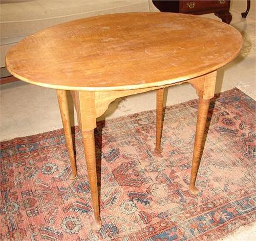 QUEEN ANNE STYLE TIGER MAPLE TEA TABLE. 26" H, 32" W, 24" D
