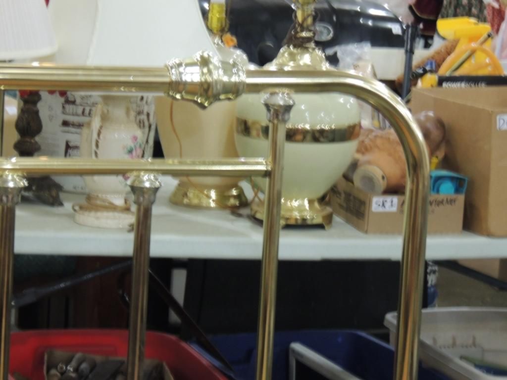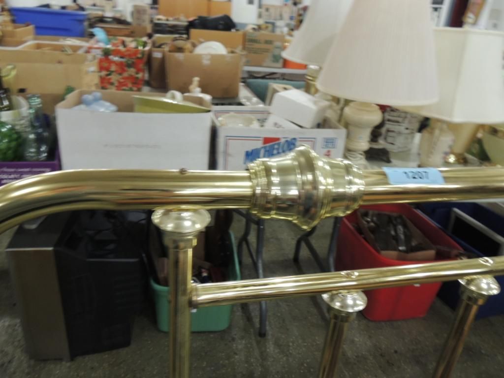 QUEEN BRASS FINISH HEADBOARD AND BEDFRAME. BRASS FINISH HEADBOARD AND BEDFRAME. QUEEN SIZE. AS SHOWN. SEE PHOTO FOR MORE DETAILS.