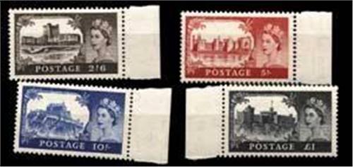 1955-58 Castles, De La Rue printing 2s 6d to £1 (SG 536a-539a) all marginals, odd shortish perf otherwise fine u/m, cat £550