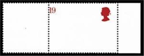 1995 19p Christmas - re-issued in 2000 colour trial in red showing the face value and Queen's head only, printed in silver on the issued design! very rare; one of only twenty from the single trial/proof sheet discovered