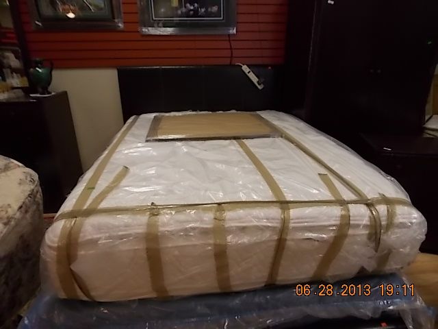 QUEEN LEATHER PLATFORM STYLE BED FRAME - NEW