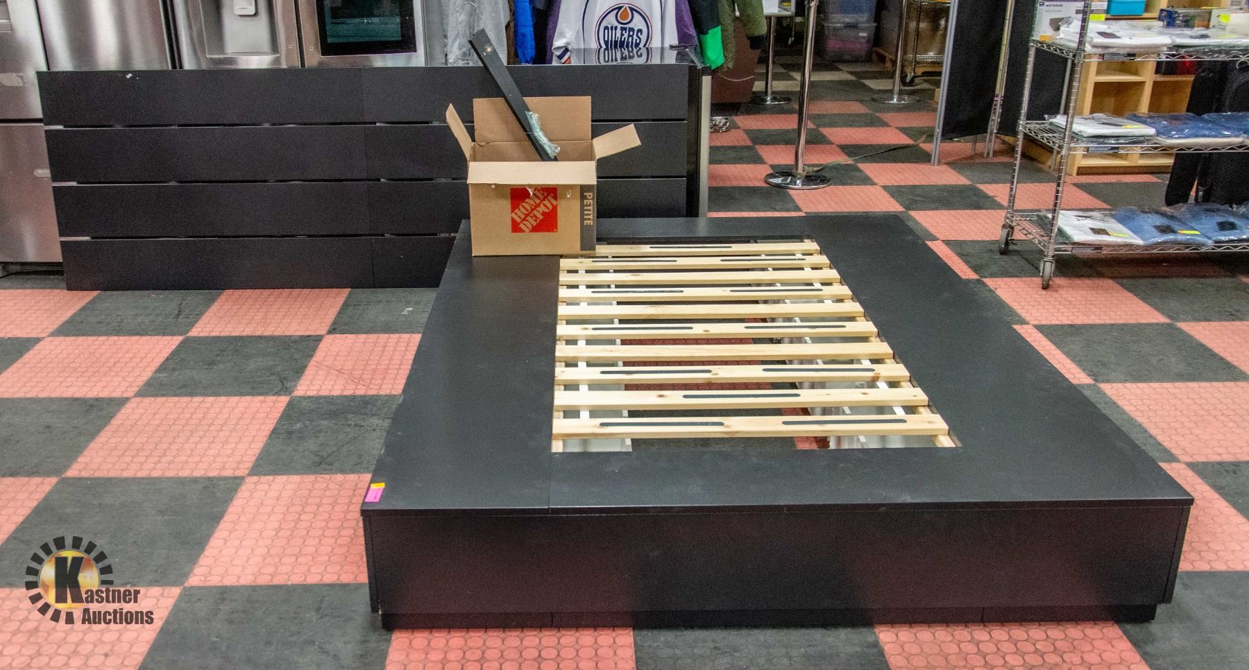 HAS UNDER BED STORAGE DRAWERS 94.5" X 84" **ALL ITEMS MUST BE REMOVED BY 5PM SATURDAY, NOVEMBER 25TH 2023. ALL REMAINING ITEMS WILL BE SUBJECT TO A $6.00 PER DAY STORAGE CHARGE. ANY ITEMS REMAINING AFTER MONDAY, DECEMBER 11TH, 2023 WILL BE CONSIDERED FORFEITED. NO REFUNDS WILL BE ISSUED FOR FORFEITED ITEMS. TO SCHEDULE A PICK UP APPOINTMENT CLICK HERE