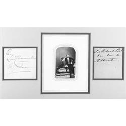 Signatures of both on small separate sheets, with Victoria writing: "The Lord Chancellor The Queen" and her husband Albert writing: "Sir Robert Peel &c &c &c Albert". Both nicely double-matted with a carte-de-visite photograph of the couple, set in a gold wood frame. With Rendell provenance.