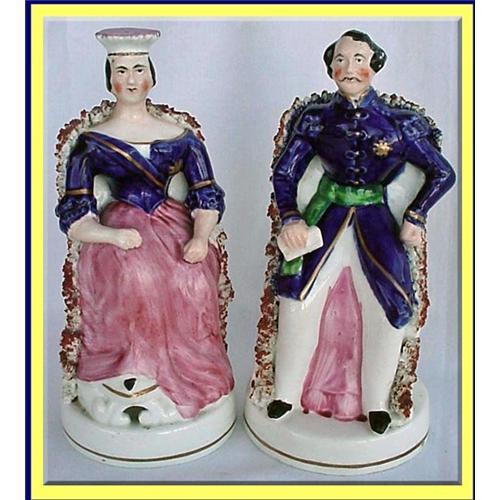 Pair of VIcotorian Staffordshire commemorative figurines Queen Victoria and Prince Albert. Made in England 19th century, about 1850.