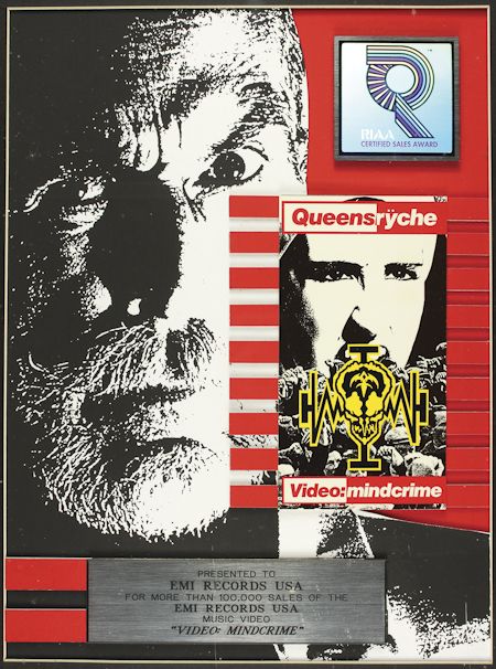 QUEENSRYCHE "VIDEO: MINDCRIME" PLATINUM SALES AWARD, 1989