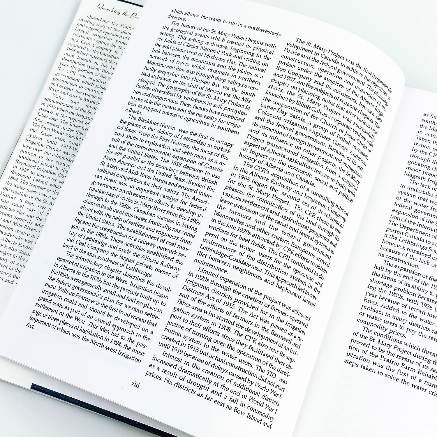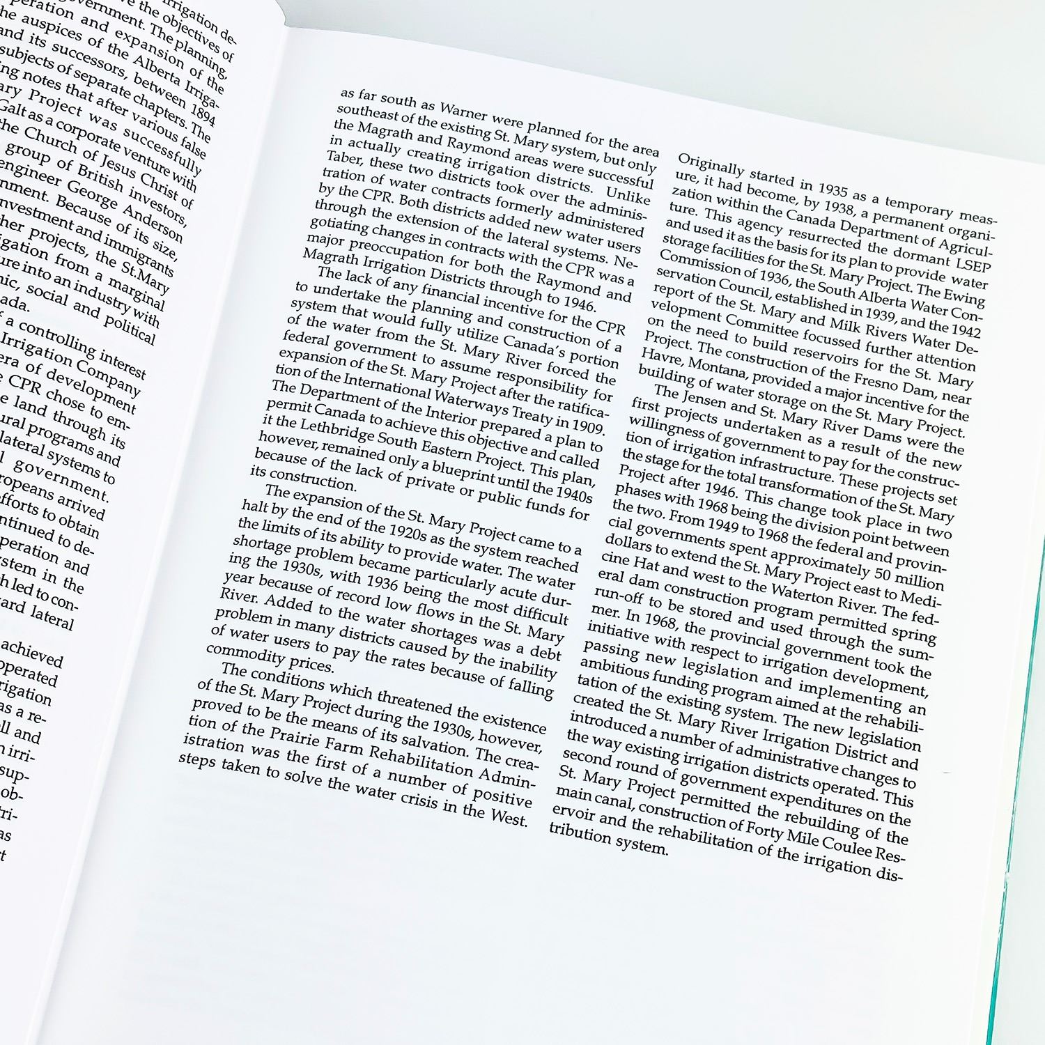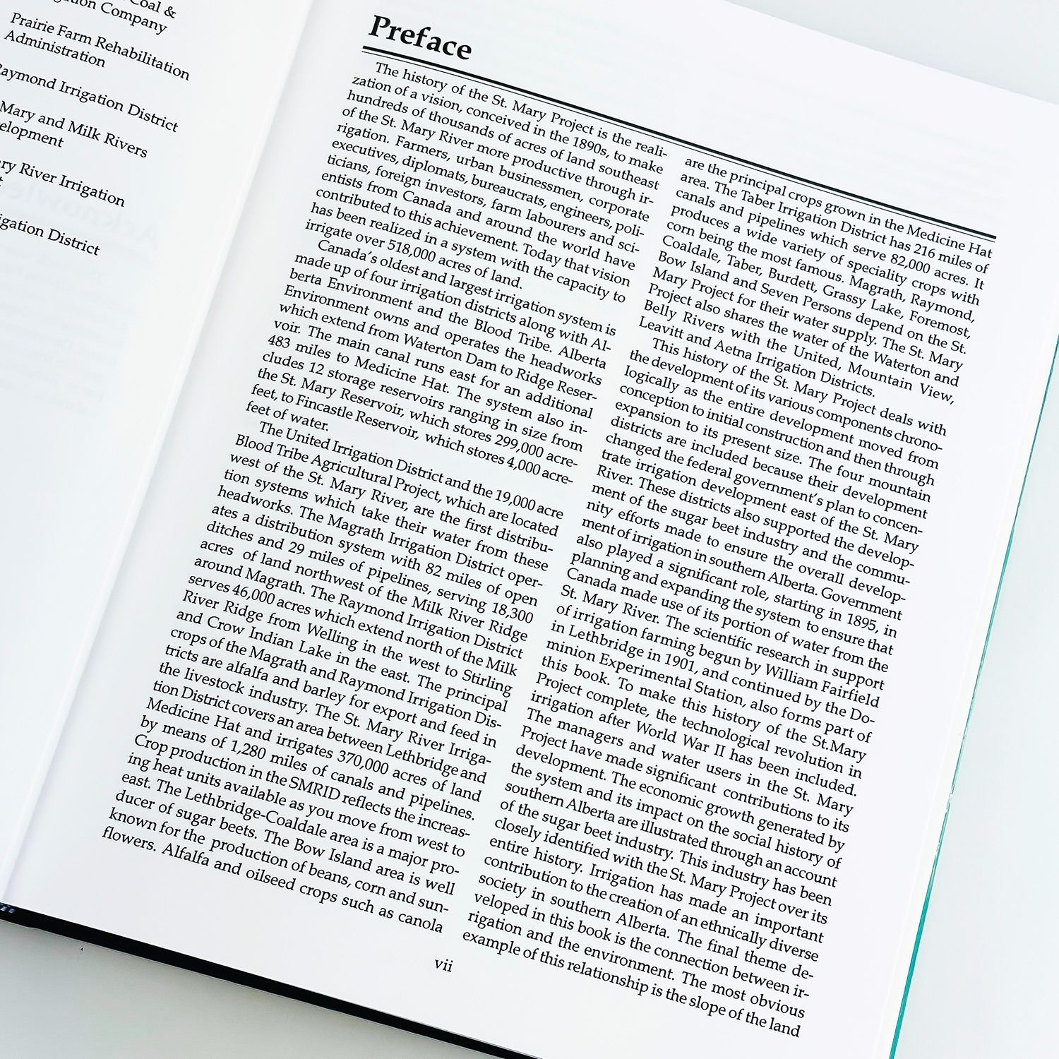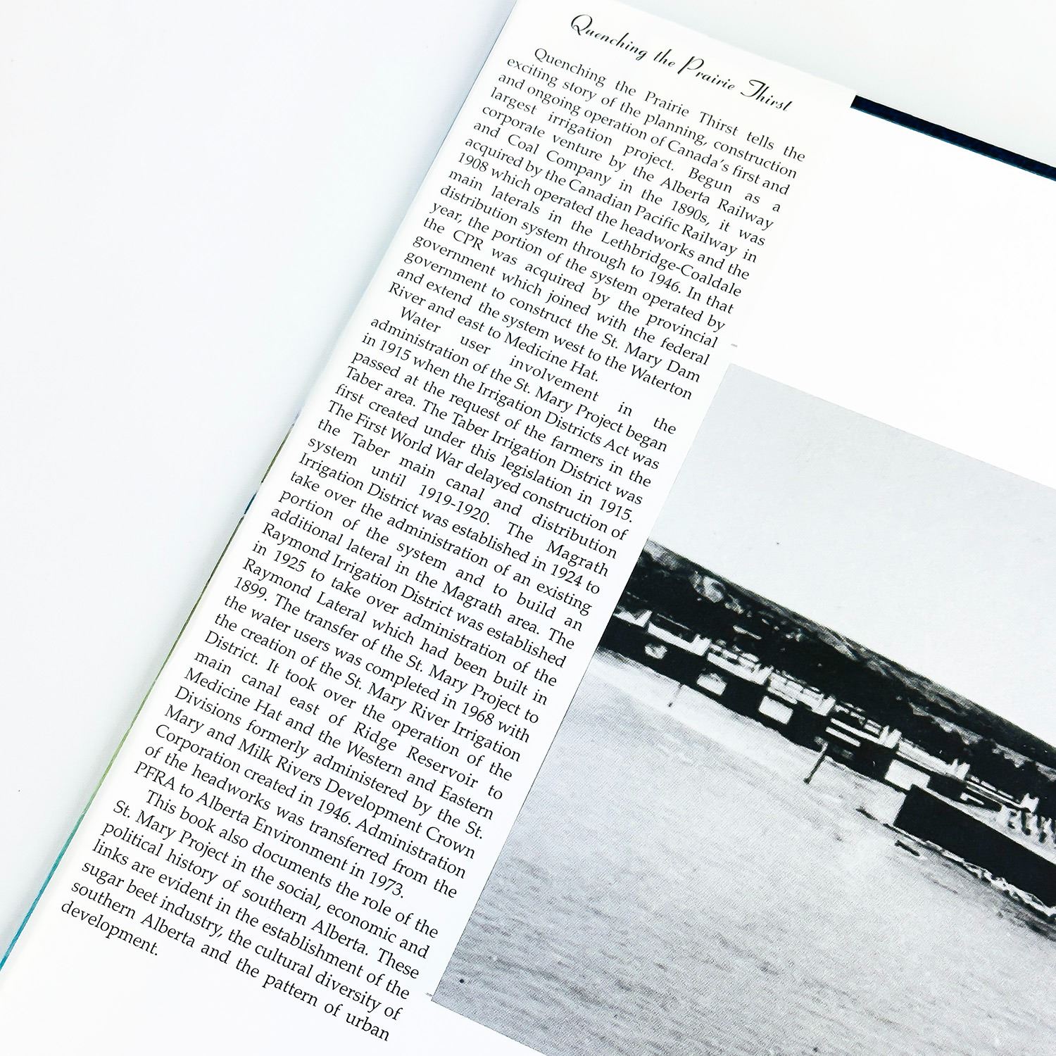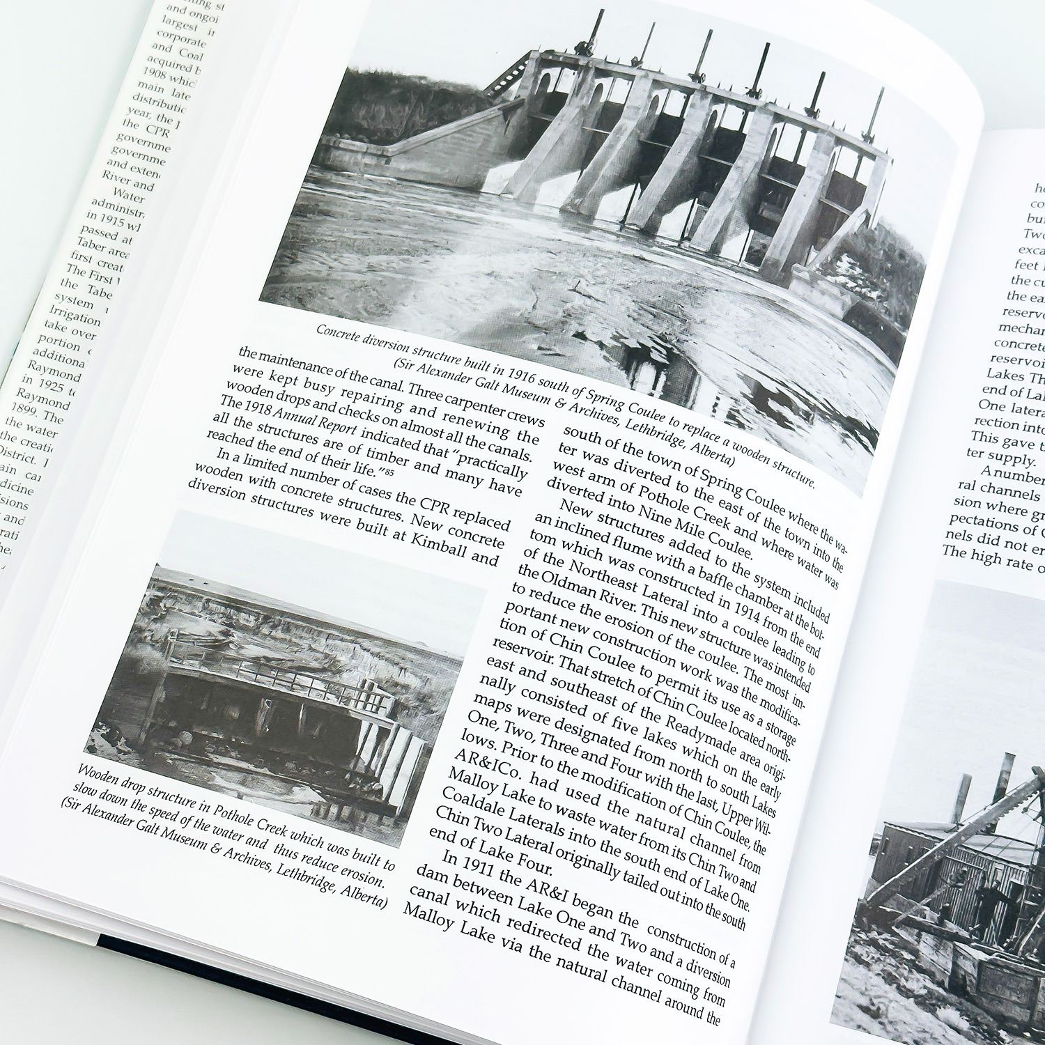#8300 - AN ALBERTA HISTORY BOOK - HISTORY OF THE TABER, RAYMOND, MAGRATH & ST. MARY RIVER IRRIGATION DISTRICTS. HARDCOVER BOOK WITH DUST JACKET COPYRIGHT 2000 (FIRST PRINTING) - 286 PAGES. MEASURES: 11.25” (28.5 CM) BY 8.75” (22.5 CM)