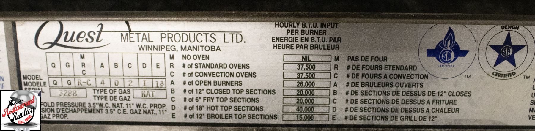 QUEST COMBINATION RANGE W/ GRILL, GRIDDLE, BURNERS