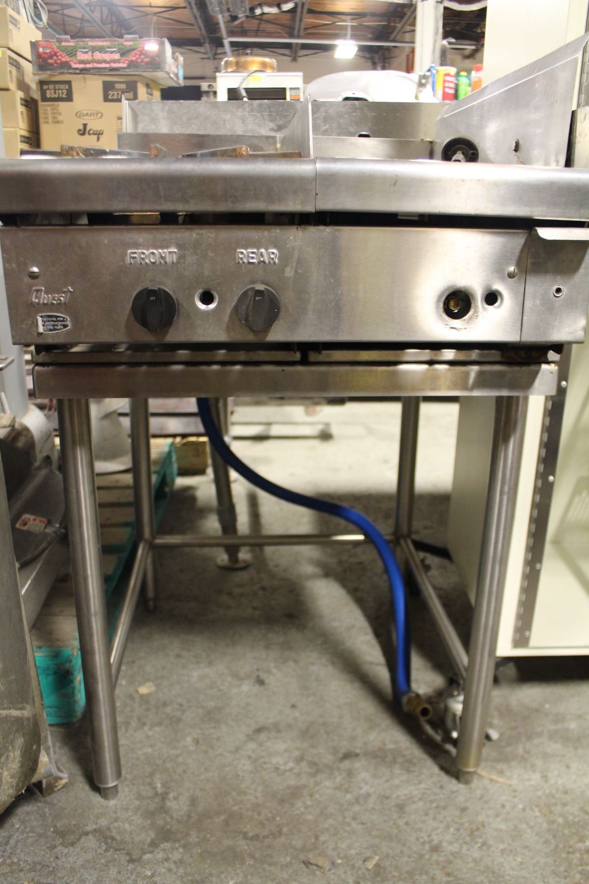 2 BURNER & " X " FLAT TOP GRILL (1/2" PLATE) ON EQUIPMENT STAND **ALL ITEMS MUST BE REMOVED BY 5PM MONDAY, SEPTEMBER 12TH, 2022. ALL REMAINING ITEMS WILL BE SUBJECT TO A $6.00 PER DAY STORAGE CHARGE. ANY ITEMS REMAINING AFTER MONDAY, SEPTEMBER 26TH, 2022 WILL BE CONSIDERED FORFEITED. NO REFUNDS WILL BE ISSUED FOR FORFEITED ITEMS.** TO SCHEDULE A PICK UP APPOINTMENT CLICK HERE