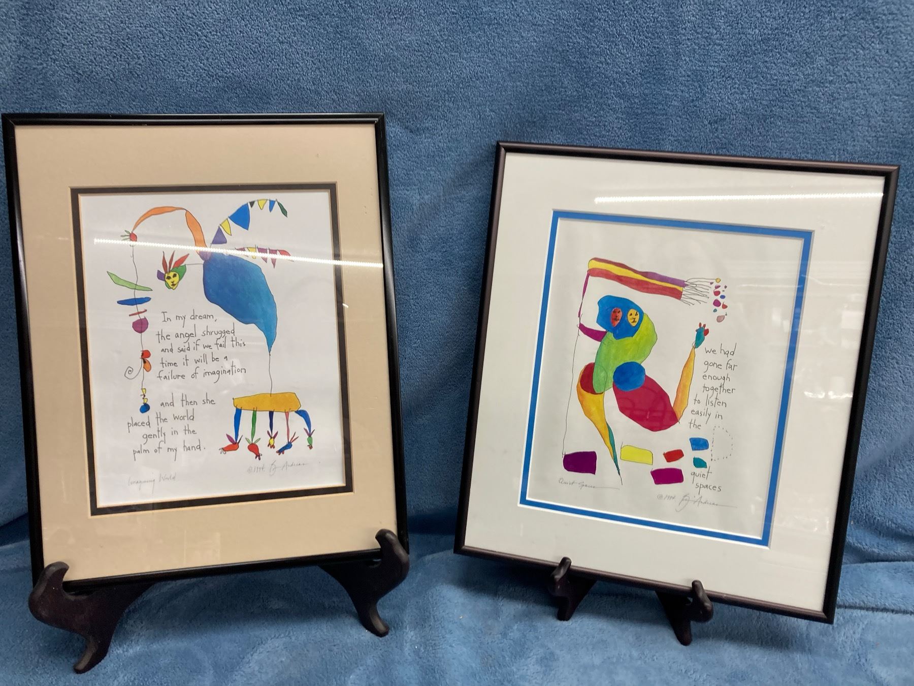 PERFECT CONDITION SIGNED ART. PROFESSIONALLY FRAMED. NICE LOT OF TWO