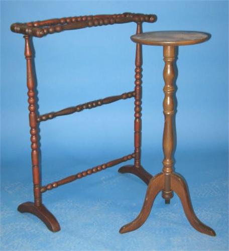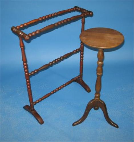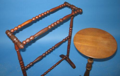 VICTORIAN QUILT RACK & CUSTOM MADE PLANT STAND. Quilt rack: 31.5” H, 23.5” W, 8” D. Plant stand: 29.25” H, 11” Dia. at top.