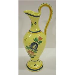 QUIMPER EWER. Floral decorated with Dutch male on body. Marked on bottom "H.B. Quimper-France". 10.25" H