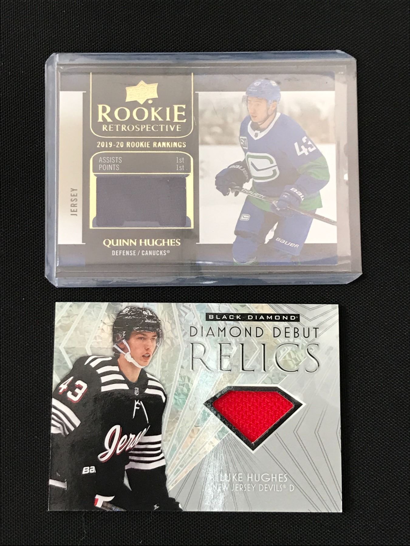 QUINN AND LUKE HUGHES ROOKIE PATCH TRADING CARD LOT