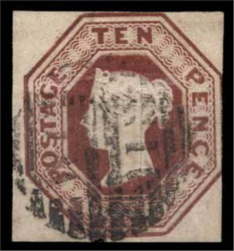 1847-54 10d Embossed brown (SG 57) cut square, touching at top and right to large margins, acceptable example cat £900 (TAXABLE)