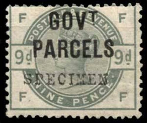 Official - Govt Parcels: 1883-861 9d ovpt'd SPECIMEN (SG O63s) large part o.g. cat £150