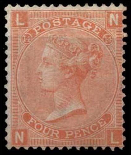 1865-67 4d dull vermilion plate 14 (SG 93) NL fine large part o.g., cat £500