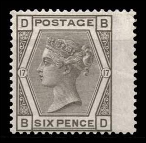 1873-80 6d plate 17 (SG 147) BD, r/h wing marginal with diagonal crease, u/m with fine fresh appearance cat £500+
