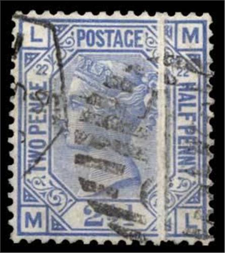 1880-83 2½d blue plate 22 (SG 157) ML with a stunning pre-printing paper fold running vertically down the stamp, used and rare variety, RPS Cert (2001)