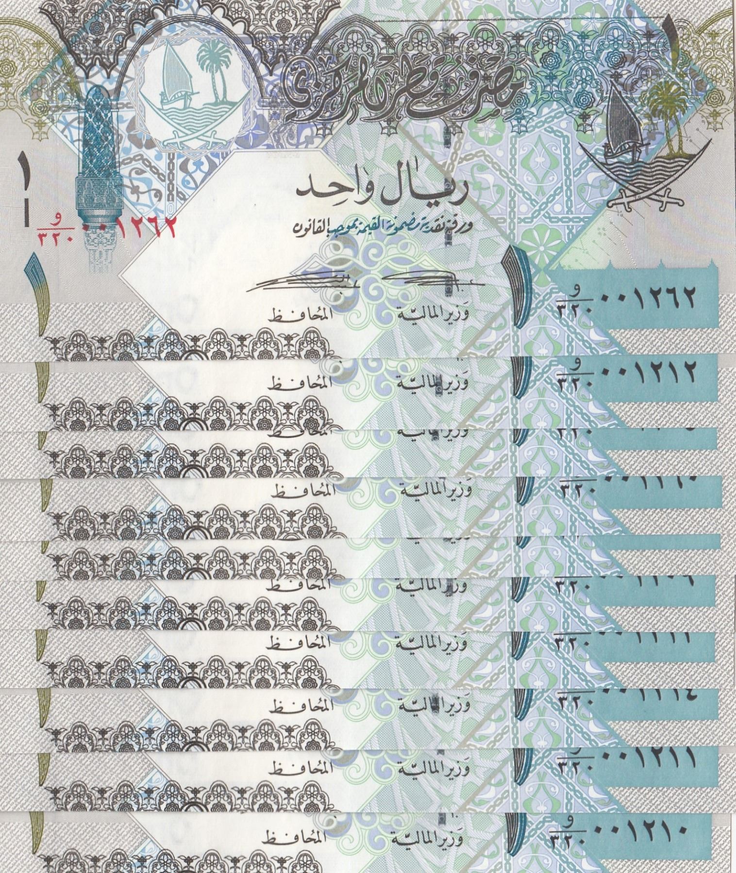 Qatar, 1 Riyal, 2008, UNC, p20, (Total 10 consecutive banknotes)br/
