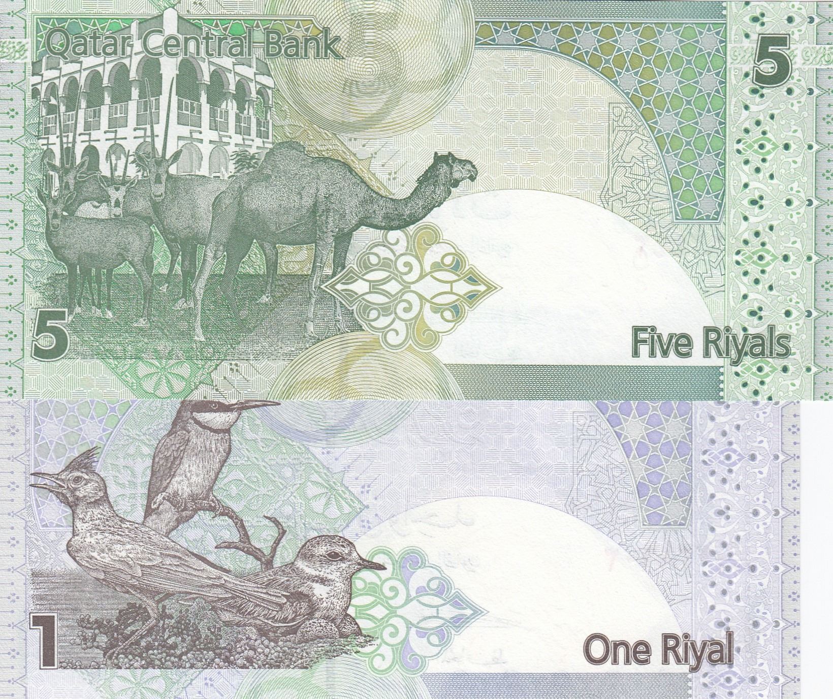 Qatar, 1 Riyal and 5 Riyals, 2003, UNC, p21, p22, (Total 2 banknotes)br/