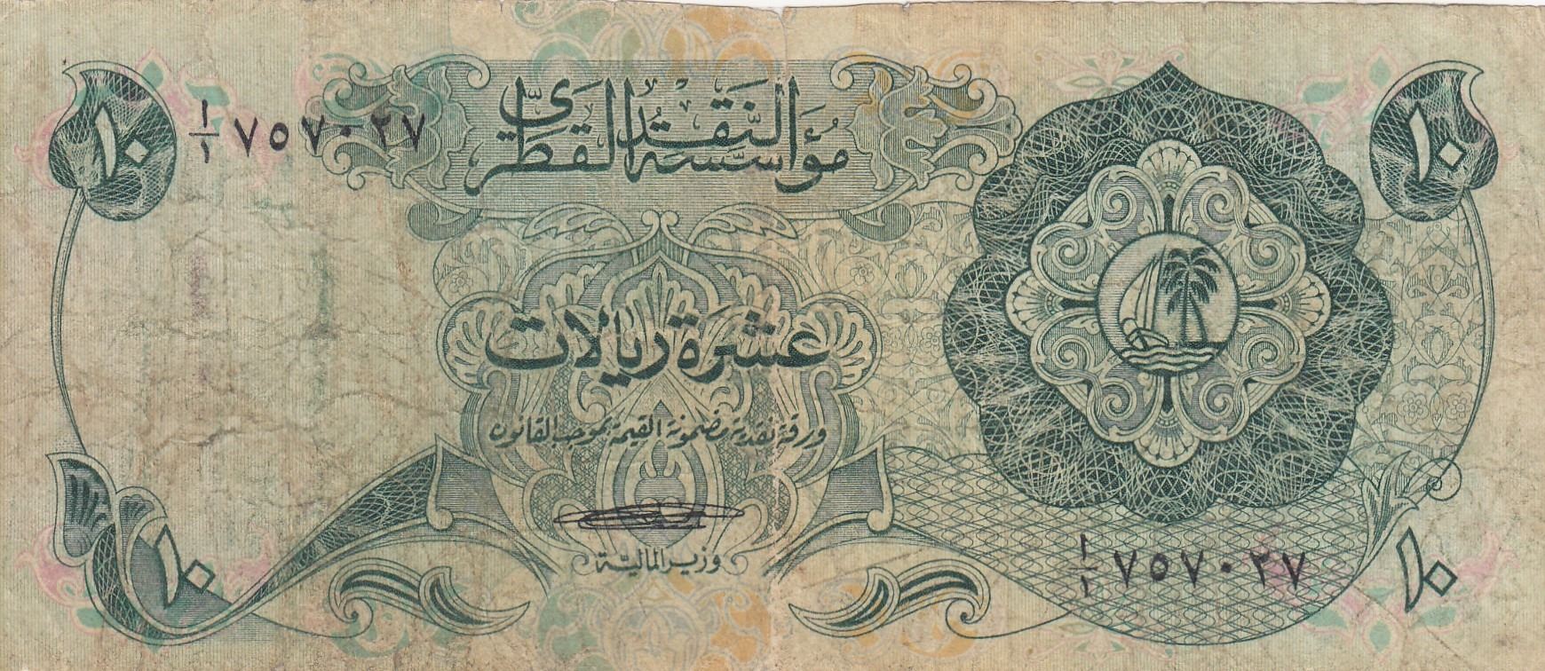Qatar, 10 Riyals, 1973, POOR, p3br/