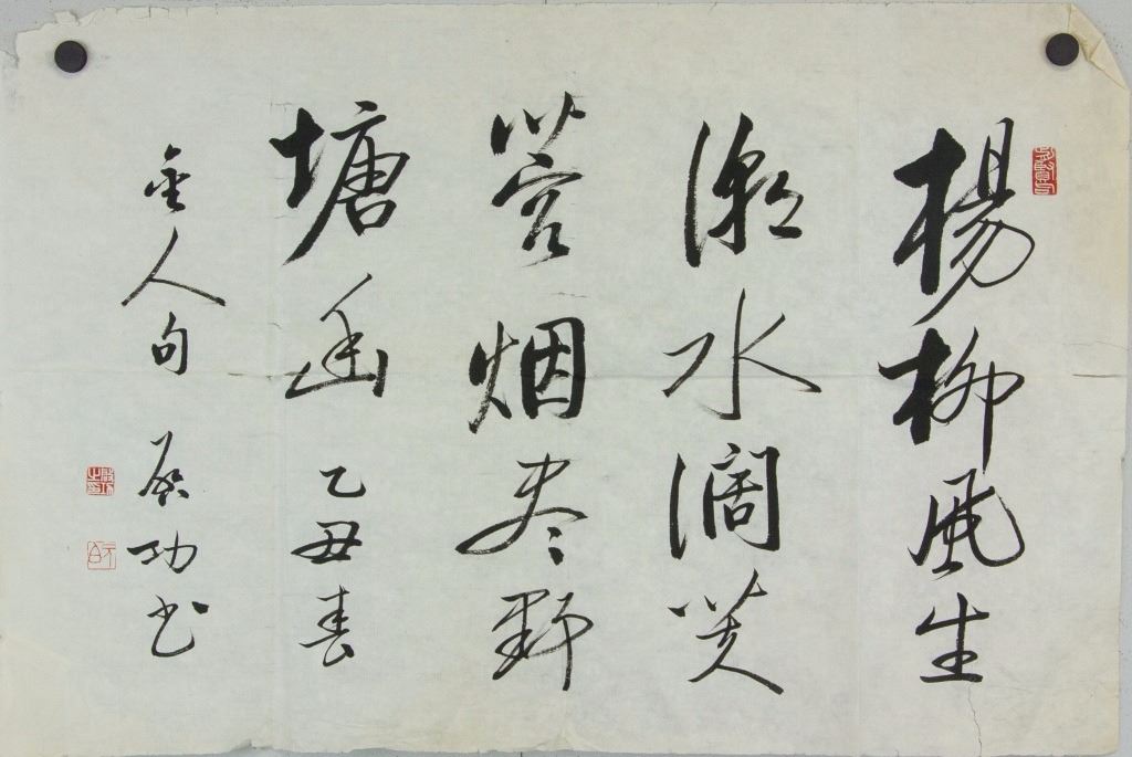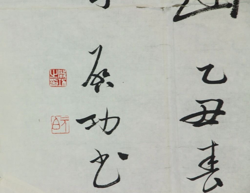 Chinese characters calligraphy; Chinese ink on paper; signed Qi Gong (1912-2005); inscribed with 3 artist seals; 46 cm × 69 cm