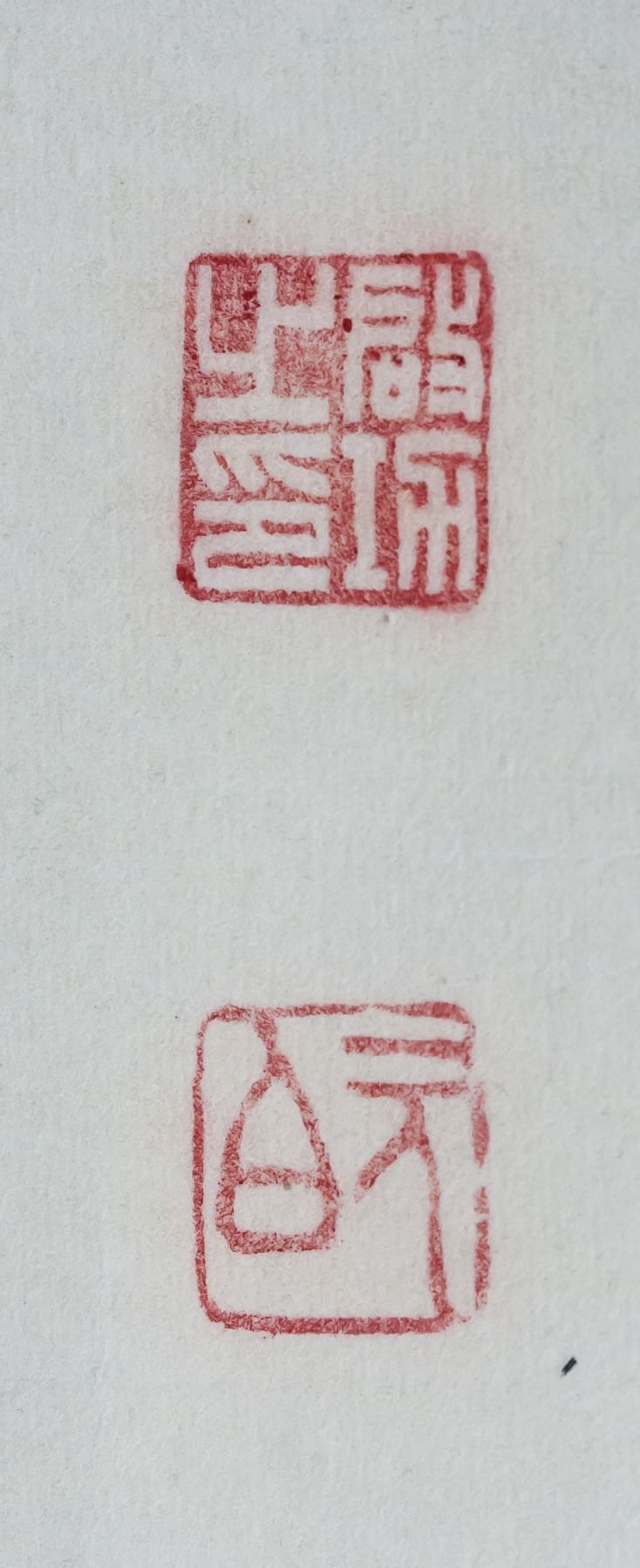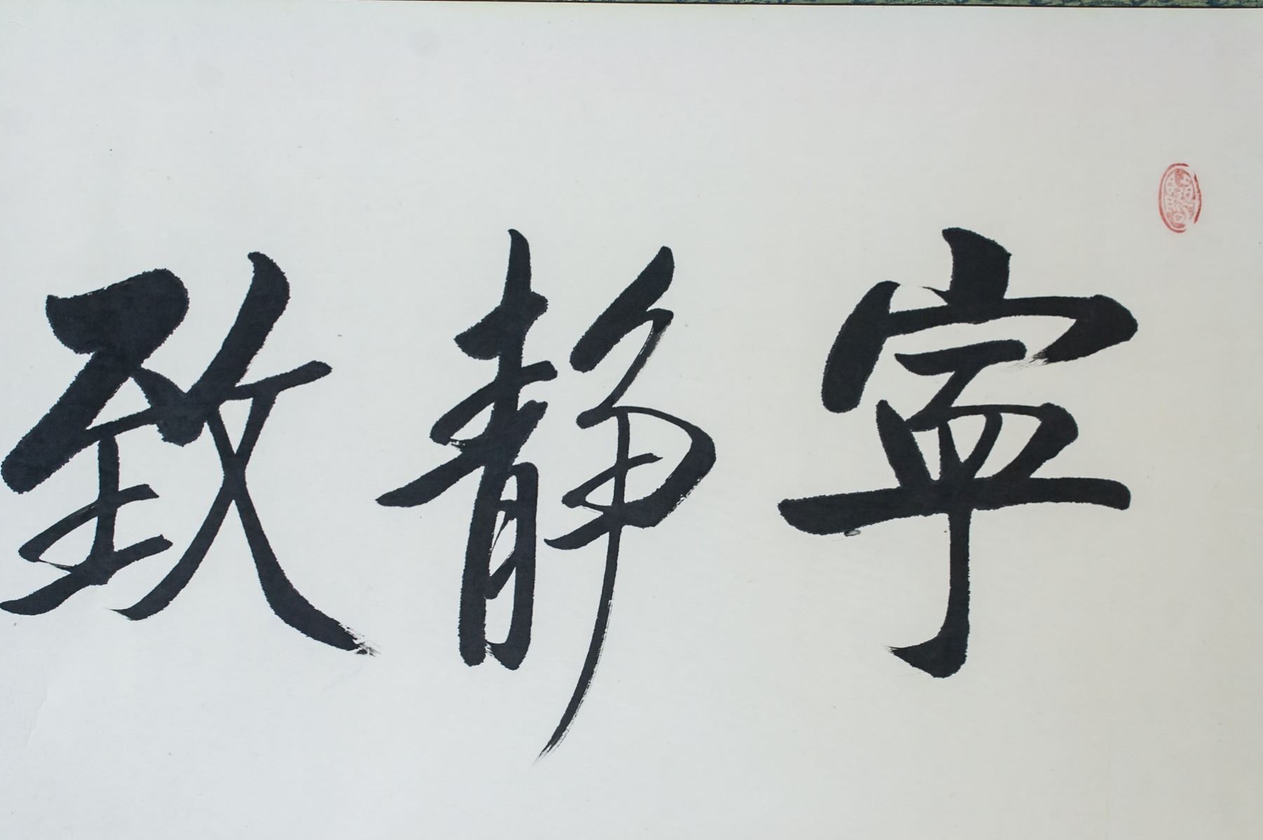 Ink on paper, paper roll. Featuring Chinese calligraphy. Signed Qi Gong (1912-2005, Chinese), inscribed with 3 seals.