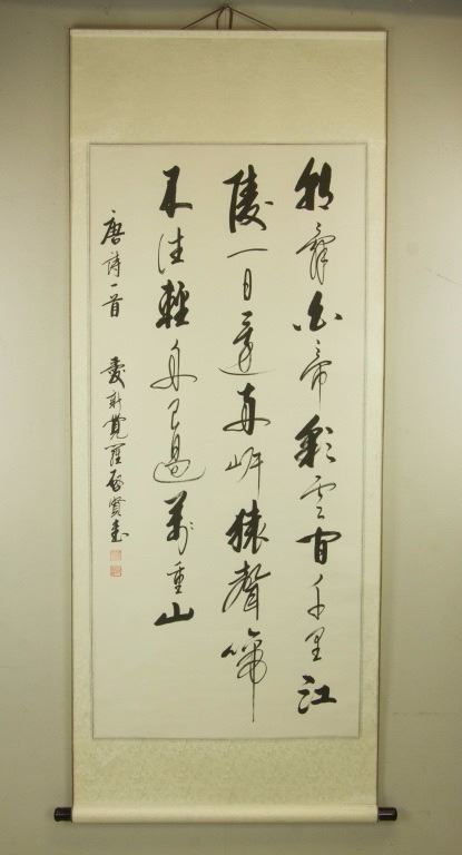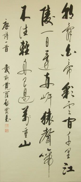 Chinese character calligraphy in semi-cursive script (xingshu); Chinese ink on paper; hanging scroll; signed Qi Xian (b.1940); inscribed with 2 artist seals; 131 cm × 60 cm