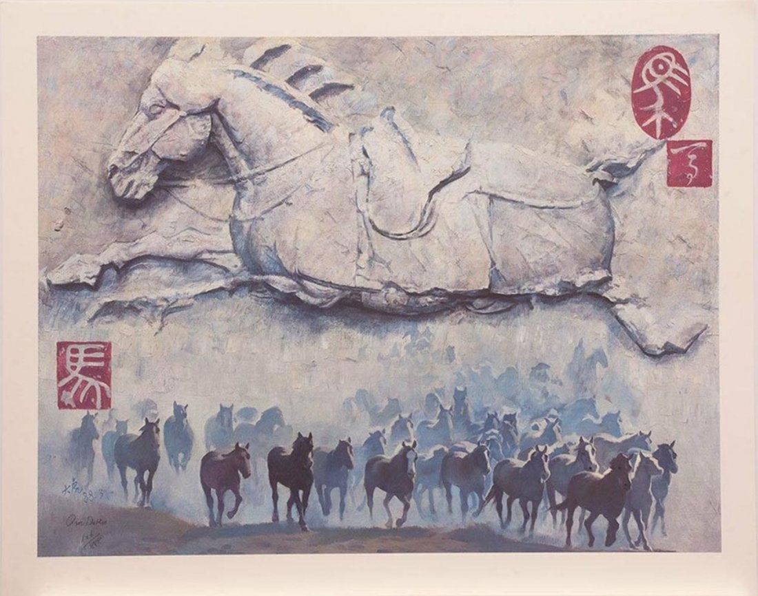 Qin Dahu's "Year of the Horse" limited edition print signed and numbered of an edition of 888. This print is in mint condition and has never been framed. Image- 23" x 30".