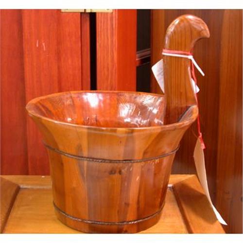 Water Strickles used to be common in every household in China. Now, they are seldom found. They were used for everything from a wine dip to a water dip. This one is from the Qing Dynasty and dates to around the 1800's. It has a carved handle and a elegant, flared design. It is made of fir and comes from Zhejiang. The bucket will hold approx. 1 gallon. It measures approx. 12.5" in height including the handle and is approx. 10.5" in width. Ones in excellent condition, such as this one, are very rare.