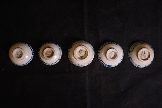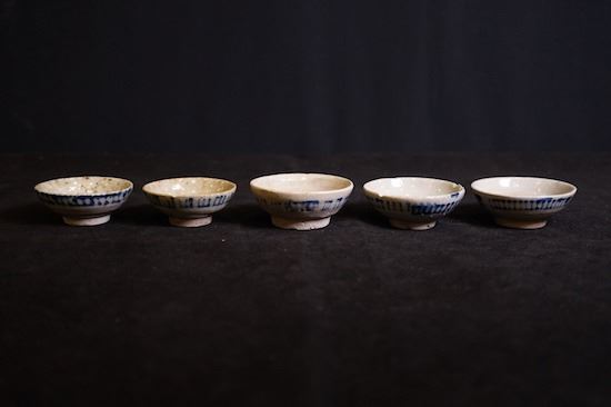 Qing Dynasty, a set of Five Small "Chun" Mark Blue-and-White Bowls.