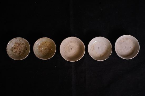 Small Cracks at the edge of two bowls. Condition as is, shown in photos. Diameter:5.7cm(2), 6cm(2);H: 2.4cm(3), 2.7cm(2)