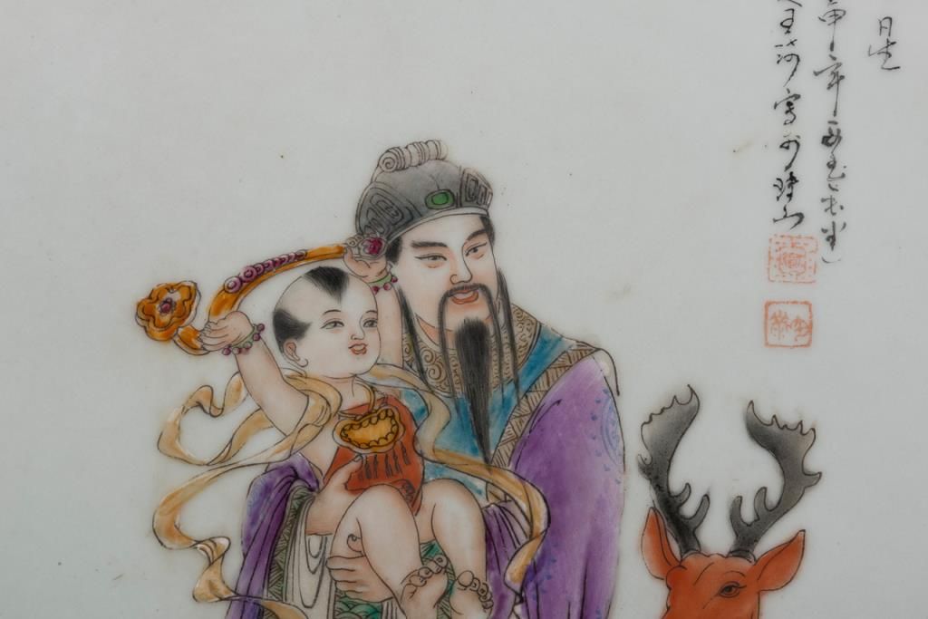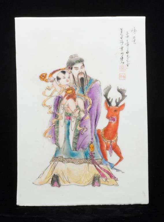 Qing Dynasty porcelain panel signed Wang Qi, approx. 14-1/4 in height by 10 wide; fine artistry; with letter of appraisal and authentication from Meili Museum signed by Curator Larry Kirkwood, recognized expert and author. Est.: $600-$1,200.