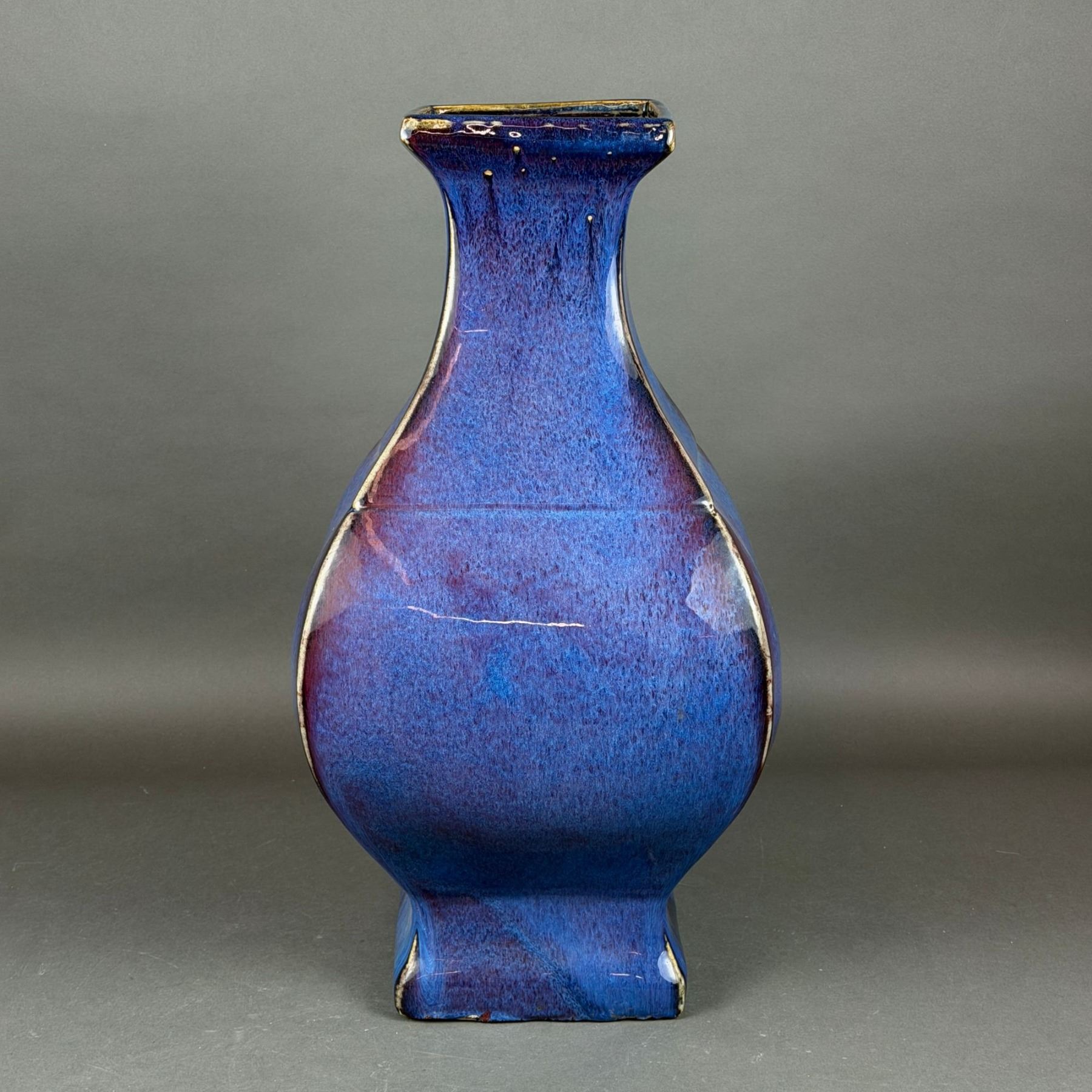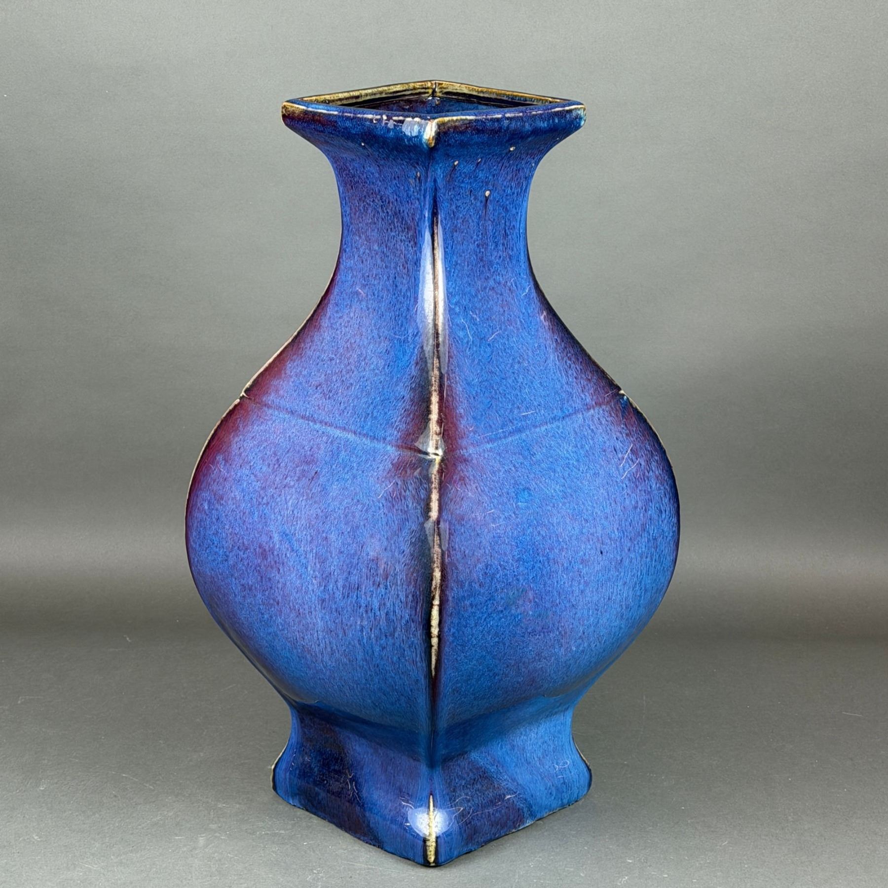 Qing Flambe Glazed Quadrangular Ceramic Vase