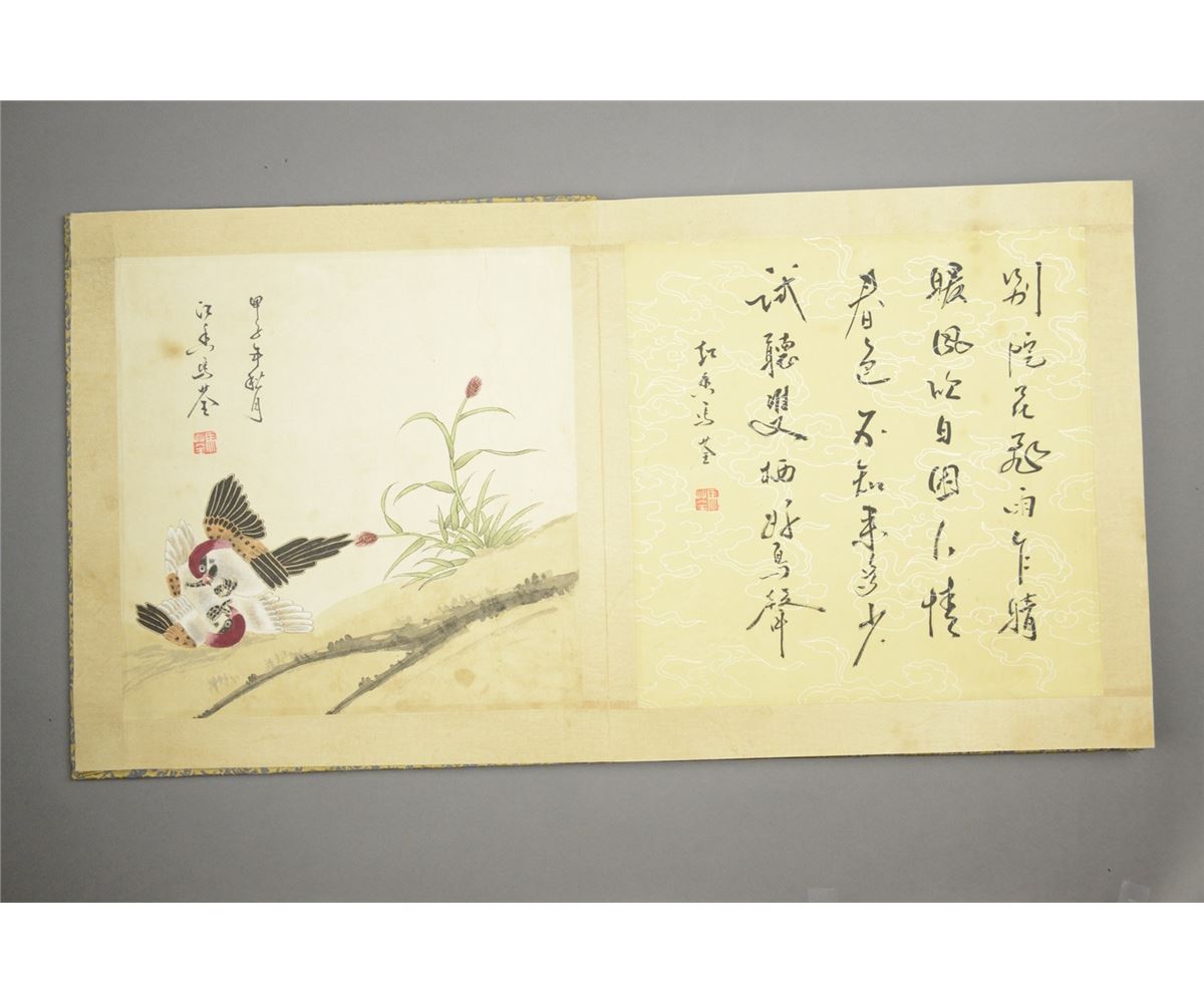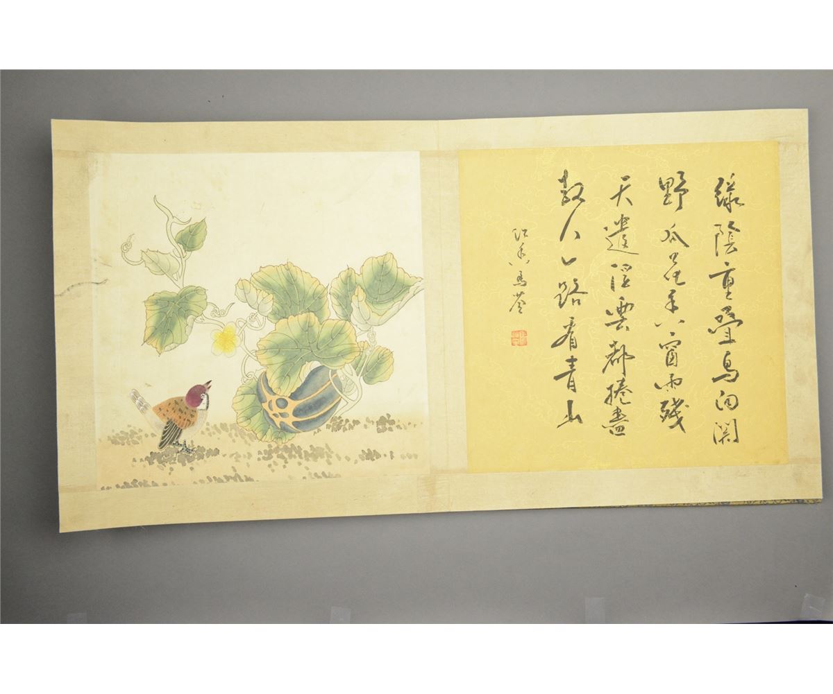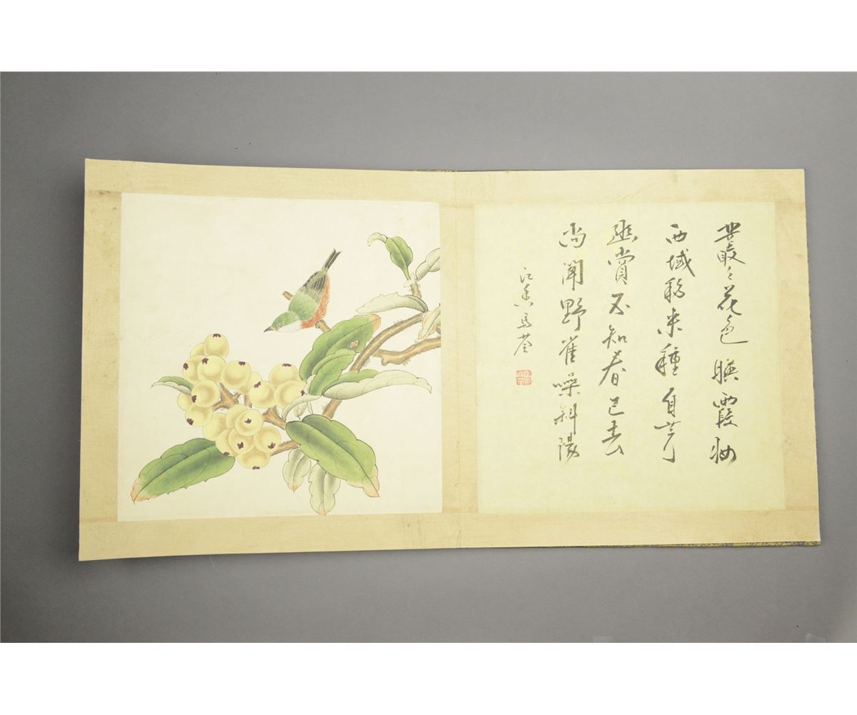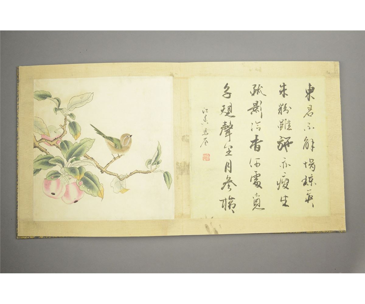 Chinese Qing Period watercolour painting and calligraphy book; sixteen pages total; signed and sealed by Ma Quan; H: 30.5 cm, L: 30 cm