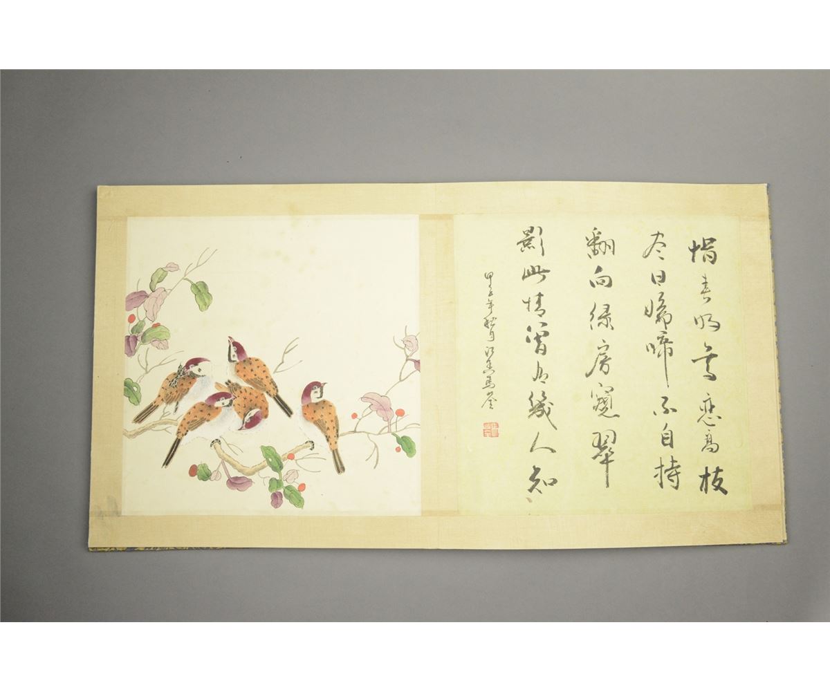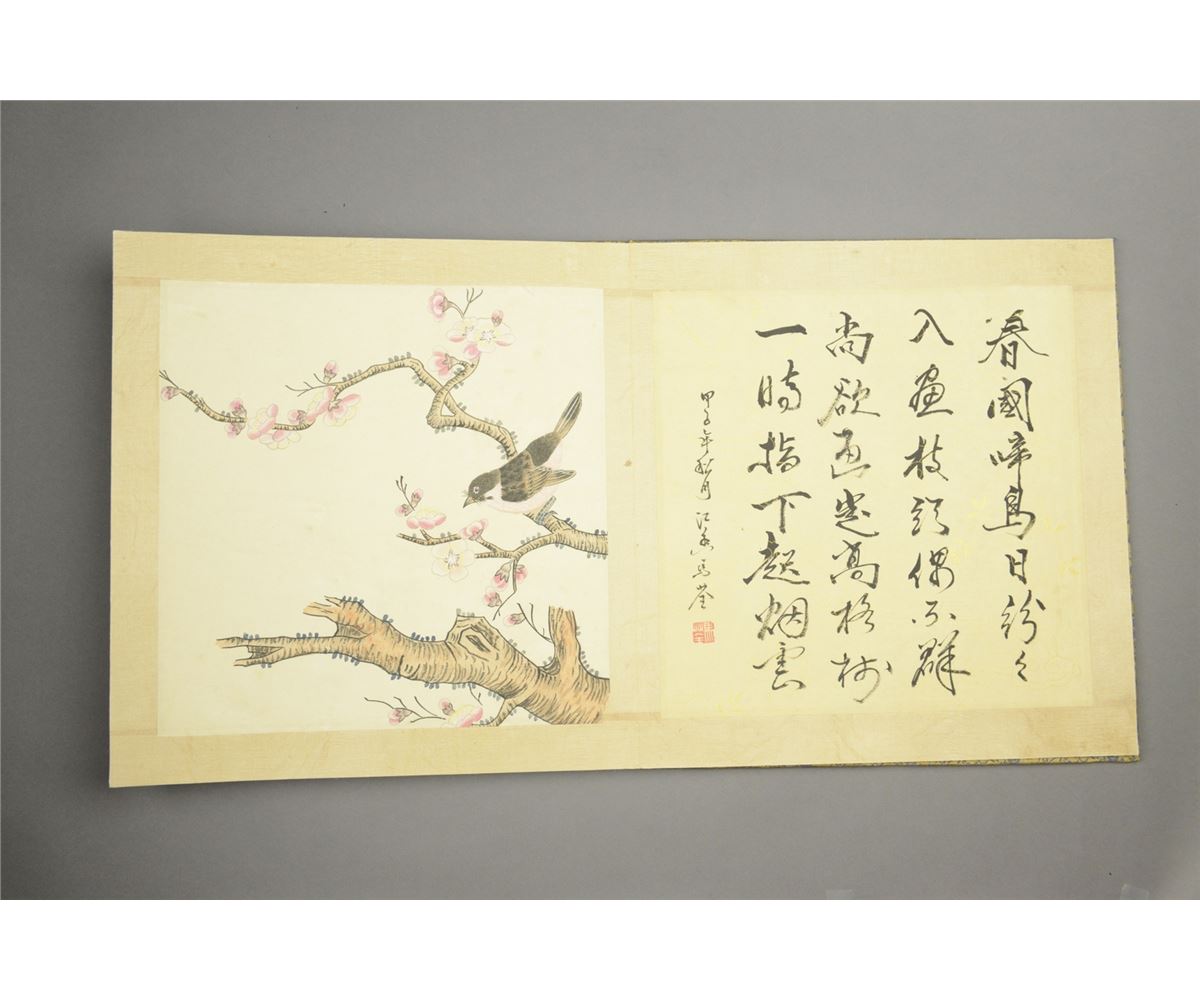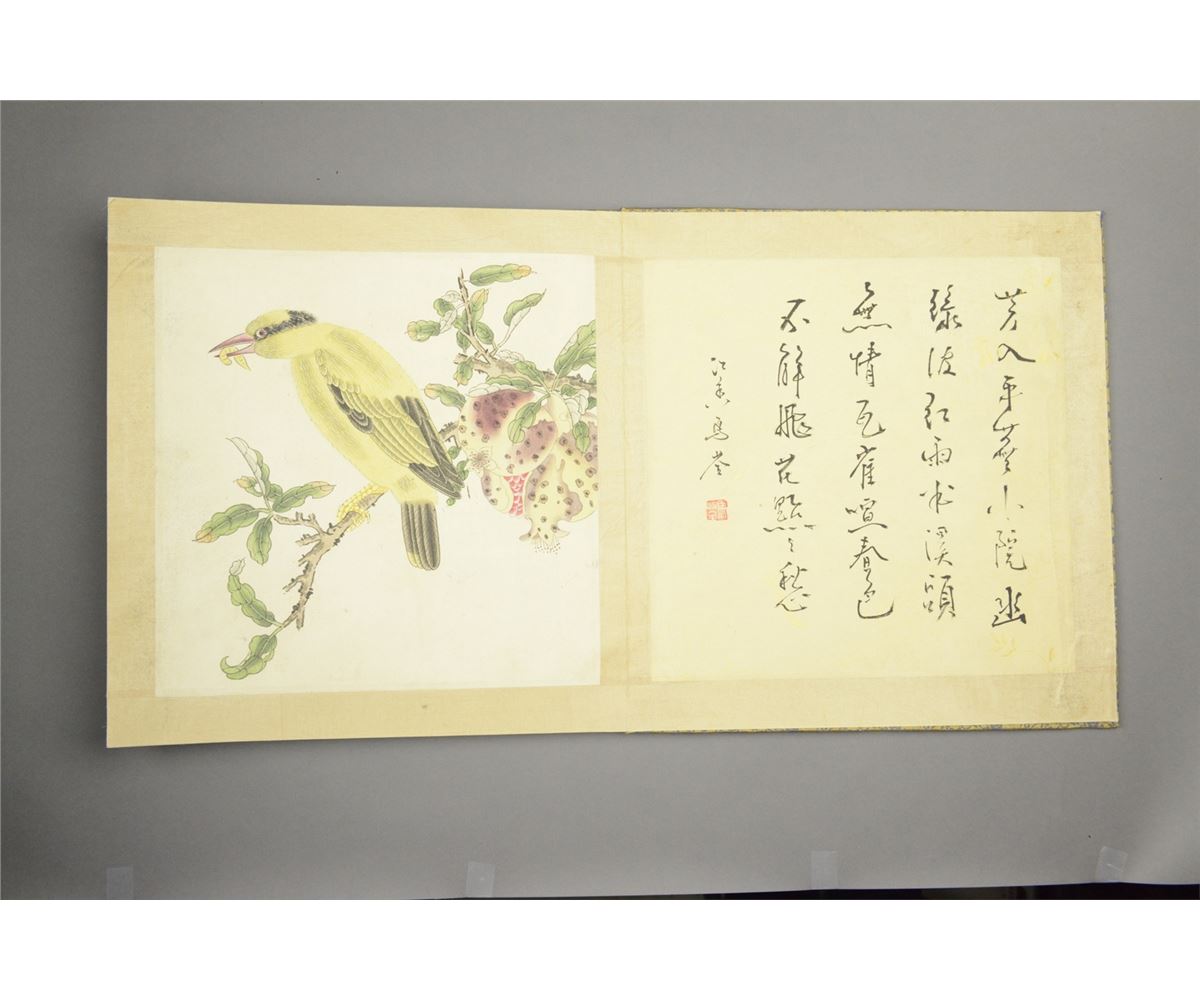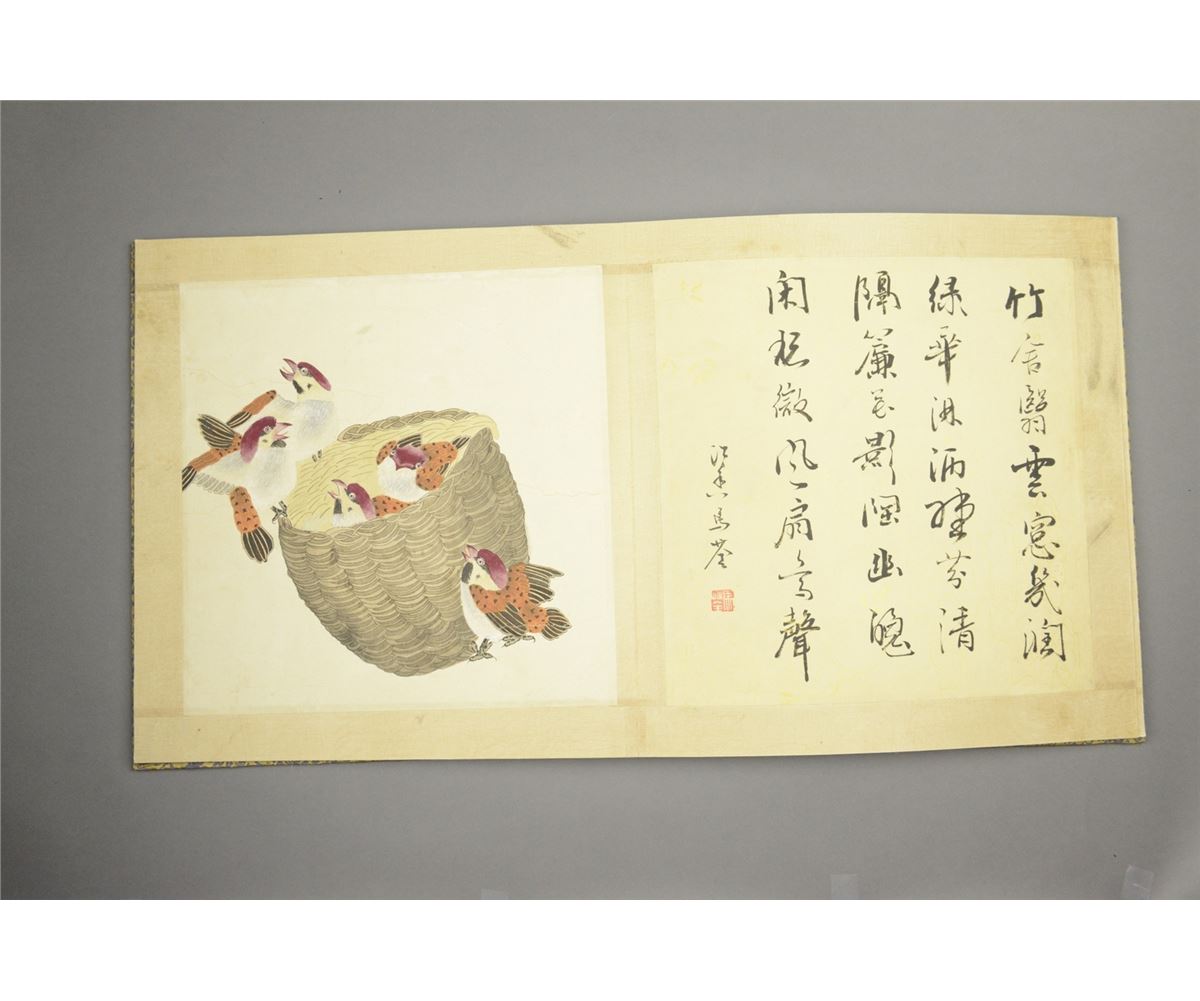 Chinese Qing Period watercolour painting and calligraphy book; sixteen pages total; signed and sealed by Ma Quan; H: 30.5 cm, L: 30 cm