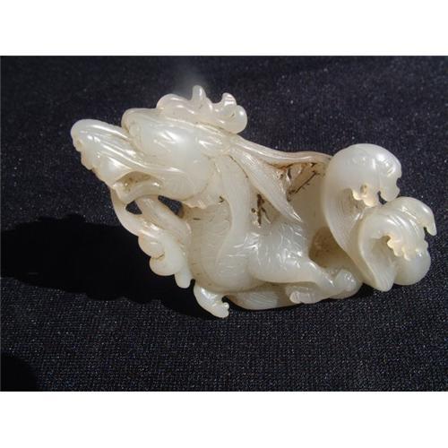 Qing period celadon jade carving in shape of a dragon. The carving is flawless in pure celadon jade and probably dates to the reign of emperor Qien Lung. Length: 3.5" (9 cm.), width: 1" (2.5 cm.), height: 2.5" (6.5 cm.). Estimated market value: $3000. From Dr. Veleanu's collection, the author of the collectors' textbook: "Jade, 5000 BC to 1912 AD, Guide to collectors".