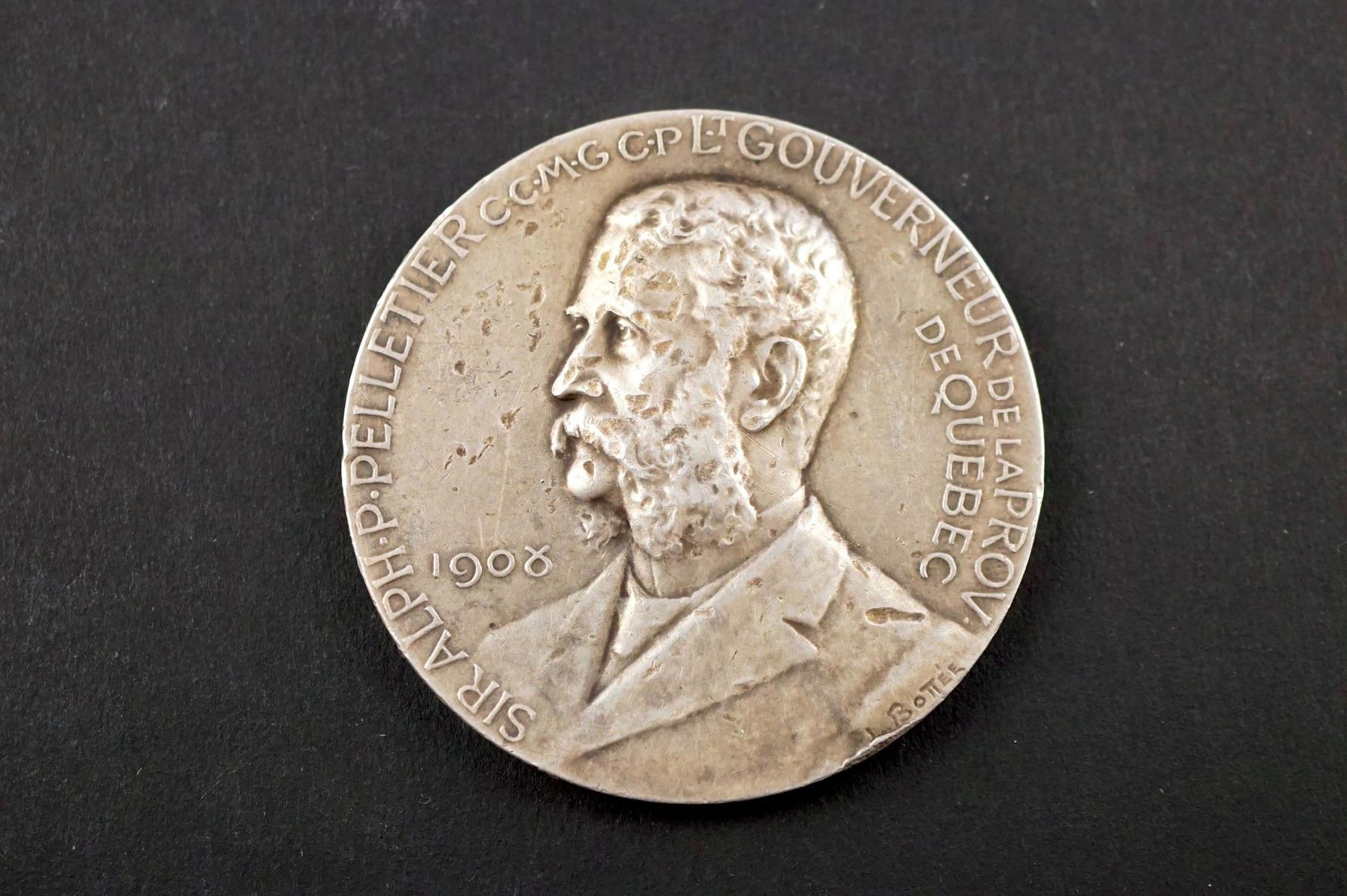 C.A.P. Pelletier 1908-1911, 9th. Lt. Gov. de Québec, AR-49, Paris Mint, L. Bottée, 57.6 grams. Edge: cornucopia & Argent double struck, VERY FINE +.