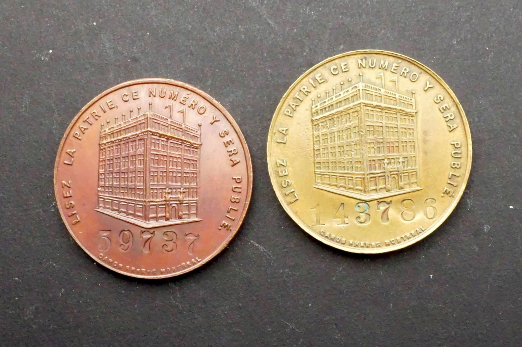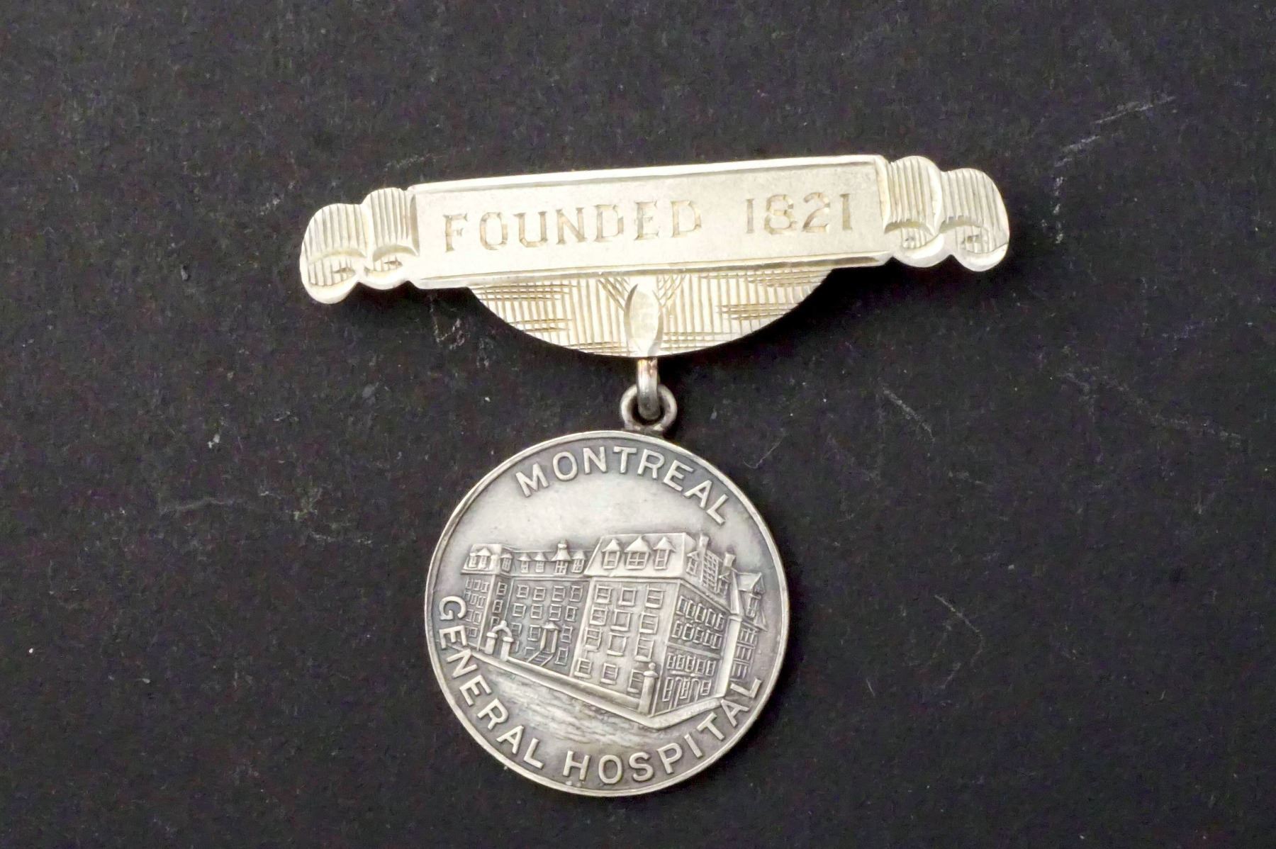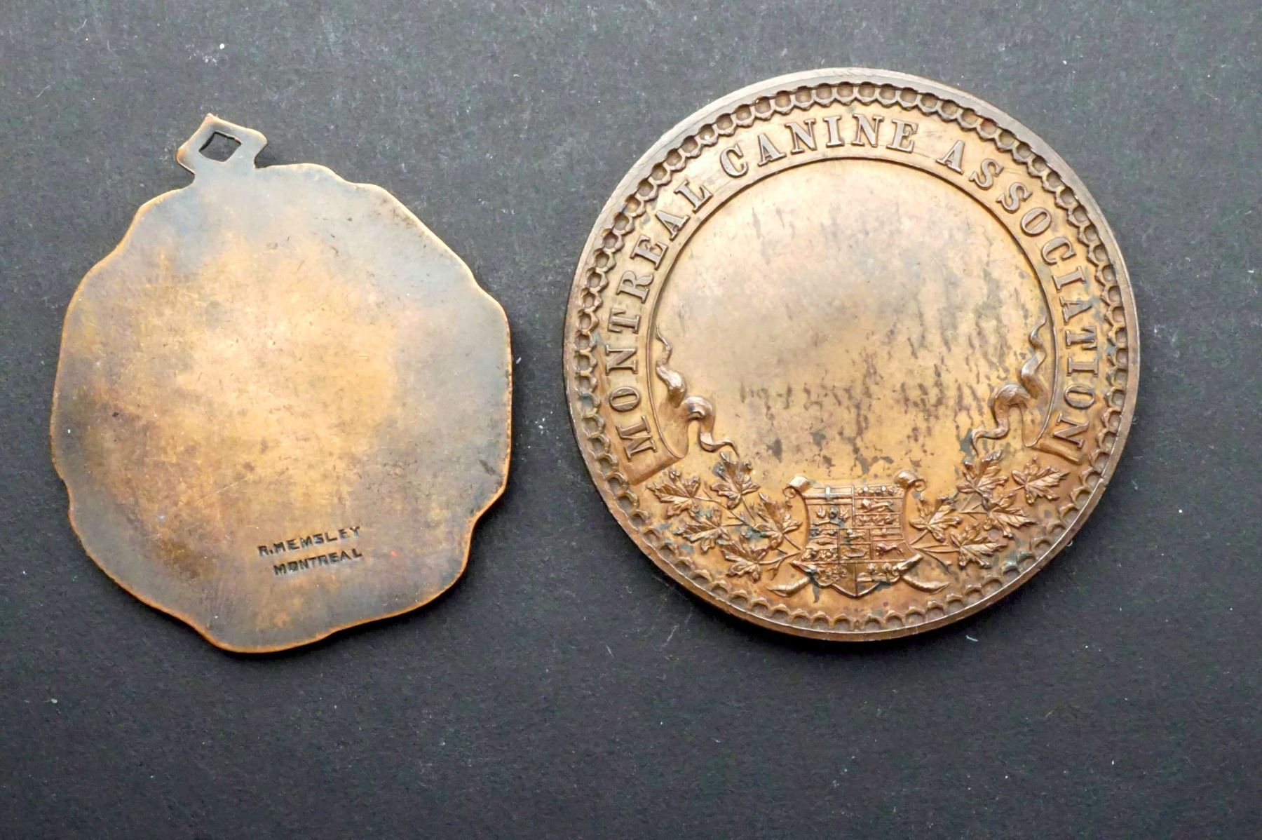 5 Pcs. Montréal Amateur Athletic Assoc. logo, uniface irregular medal by Hemsley. UNC, AE-40 w/loop, 19.3 grs, Montréal Canine Assoc. FDC AE-45, 41.3 grs., Montréal General Hospital nurse's training school medal by Birks, AR-23 w/hanger 10.1 grs. & 2 x La Patrie Jeanne D'Arc token by Caron, AE-32, #'s 148736 & 59737.