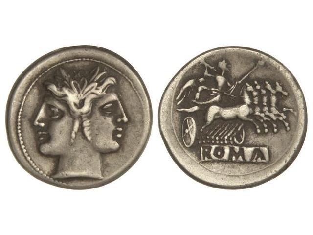 Quadrigatus. 222-205 a.C. ANÓNIMO. ROMA. Anv.: Cabeza laureada de Jano. Rev.: Júpiter en cuadriga con Victoria, debajo en cuadro incuso ROMA. 6,60 grs. AR. S-23. EBC-.